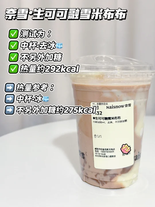 测试为:去冰🧊不另外加糖 热量约292kcal