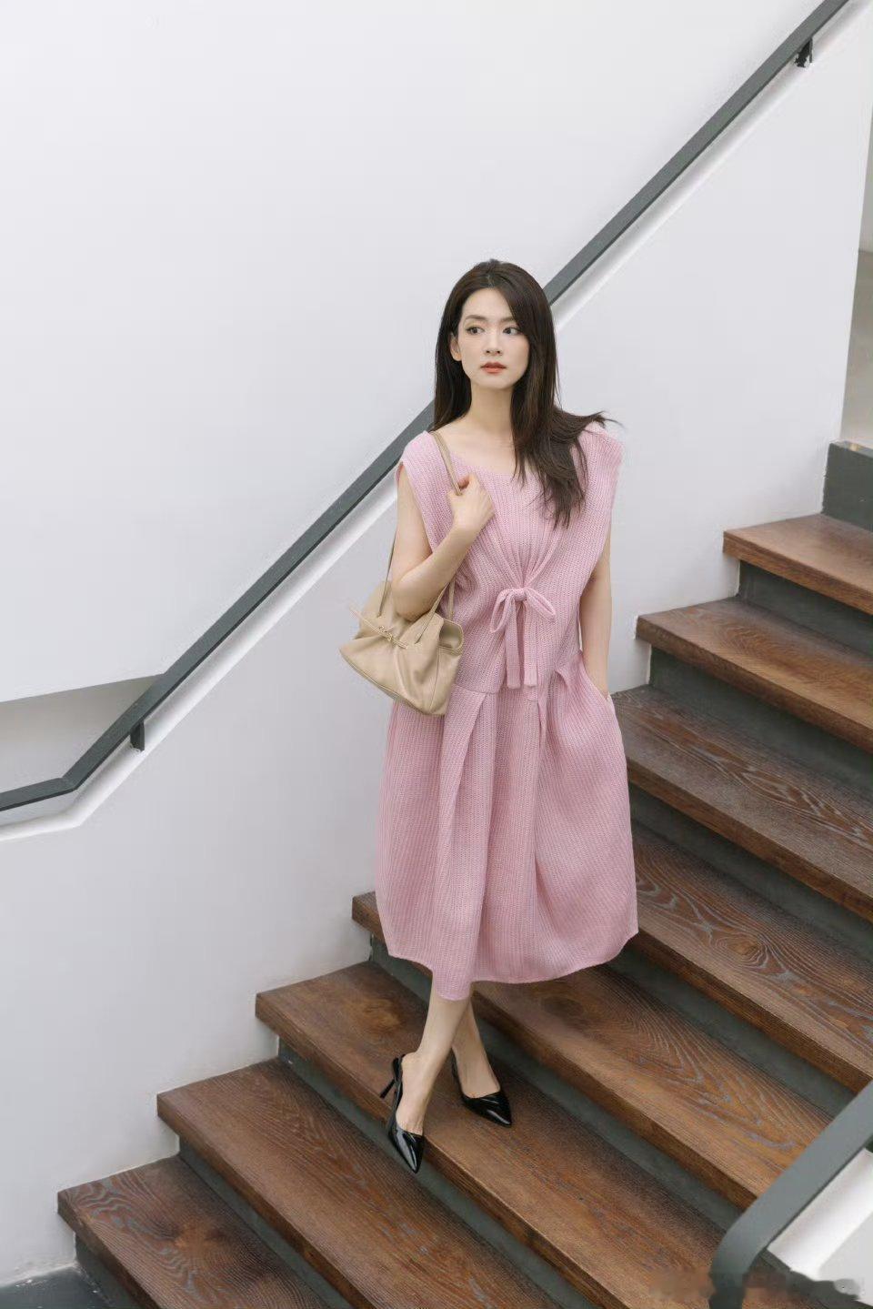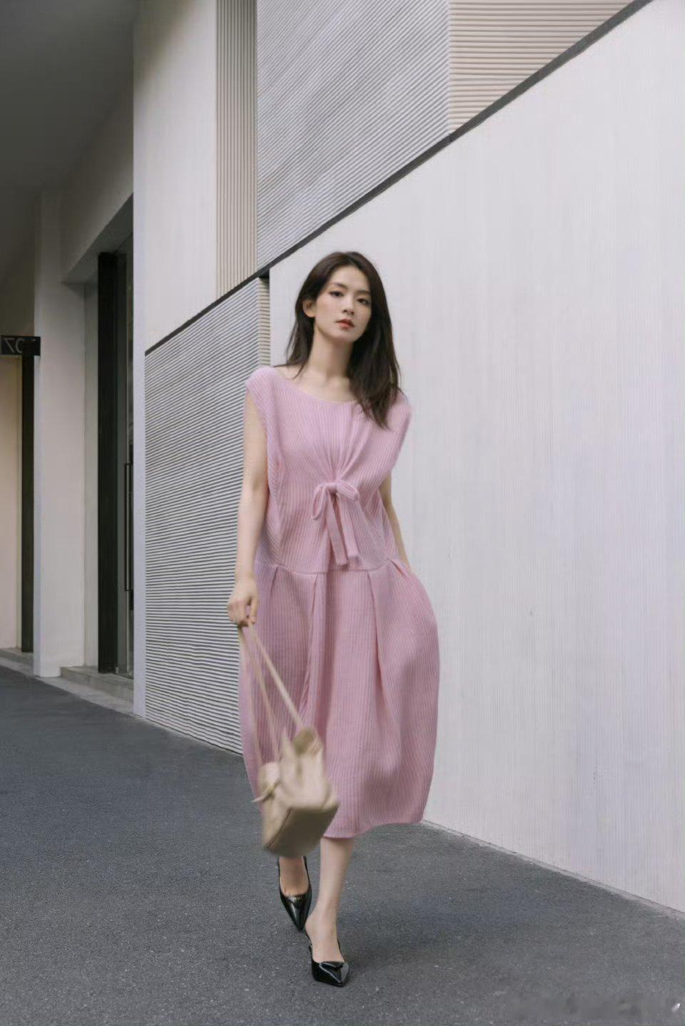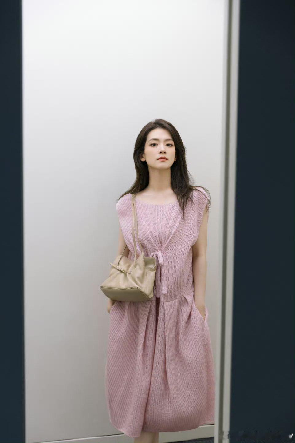 刘亦菲把死亡玫粉穿出了定制款的感觉,这种颜色普通人穿上分分钟黑三度,她居然能穿出