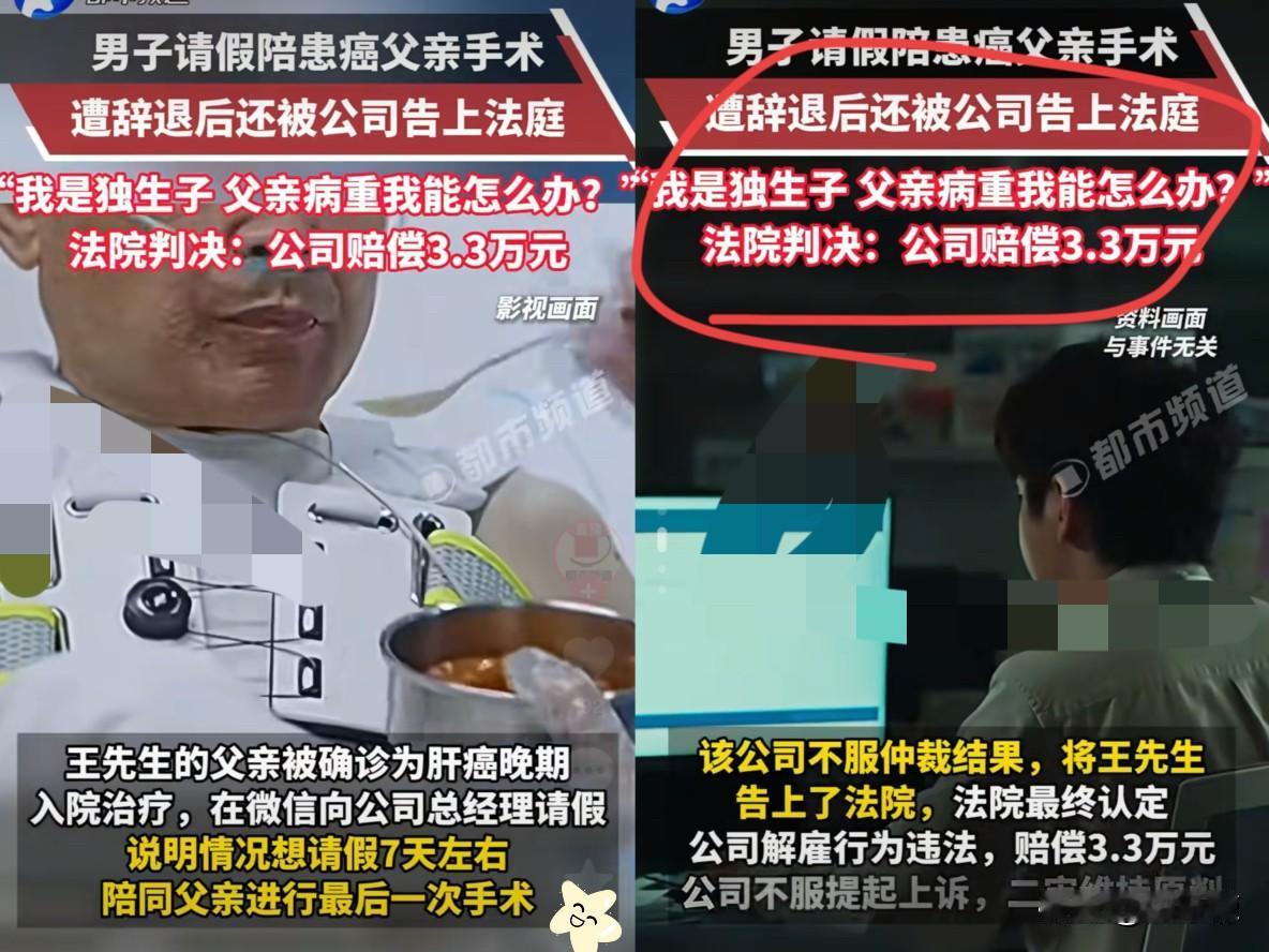 湖北武汉,男子发信息向领导请假7天,陪患癌的父亲做手术,后见领导没有回复,又赶紧打电话把手术的紧急情况说清楚,领导就“嗯”了一声。 他想着领导肯定是默许了,就全心守在医院,忙前忙后七天,人都瘦了五斤。结果一回公司,直接被人事递了解雇通知,说没走书面流程就是无故旷工! 这事儿听着就窝火!规章制度是用来规范管理的,不是当“冷血挡箭牌”的啊! 员工家里出了这么大的急事,该做的告知都做了,公司眼里却只有“没填请假单”这茬,连点基本的人情味都没有! 还好法院拎得清,不仅维持了仲裁结果,让公司恢复大哥工作、补发工资,还明确说企业得有人文关怀,不能光认条文不认人! 大家怎么看?