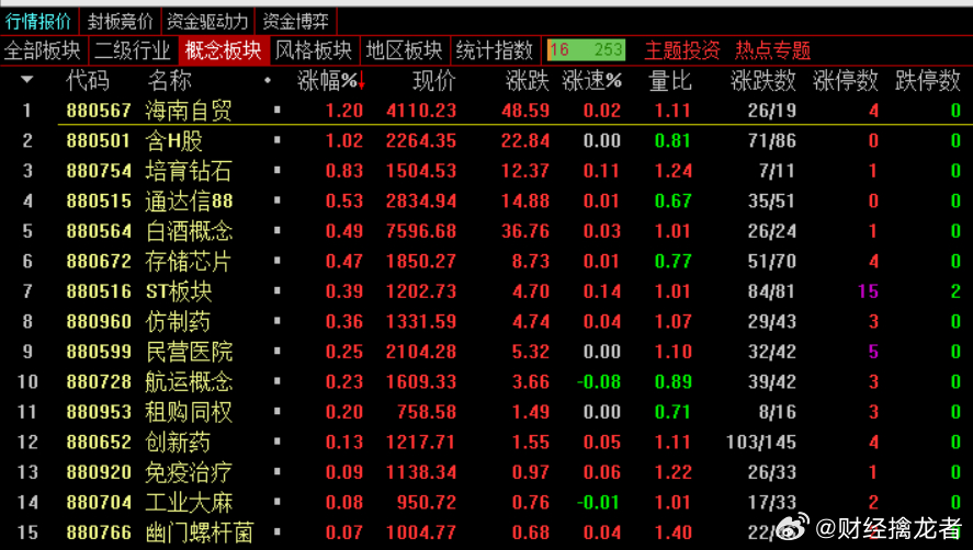 收盘,指数小幅震荡,但市场情绪整体比较差,主要靠权重托市。领涨板块是煤炭开采,海南,保险,兵装重组,港口航运,其他电子,银行等,领跌板块是小金属,特钢,钢铁,光刻机,贵金属,风电设备,金属新材料,工程机械,稀土永磁,PEEK材料,可控核聚变等,市场轮动依然很快。个股方面,1177家上涨,4171家下跌,盘中最差的时候,之后800多只是上涨的,情绪之差可见一斑。持仓表现还不错,今天拿到2只涨停,1只小涨4个多点,整体拿到接近8%的利润,但是两只涨停股的封单到收盘都比较小,不知道明天会不会低开,暂时没动,看明天竞价情况吧。今日看盘[超话]a股上证指数
