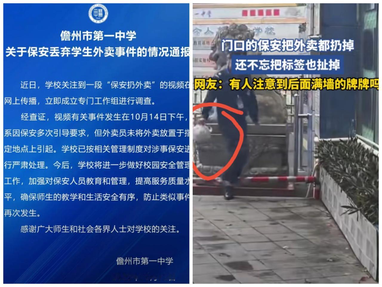 离谱!三天两起,又一个保安因学生点外卖而做出冲动的举动。 今天杭州某学校门口保