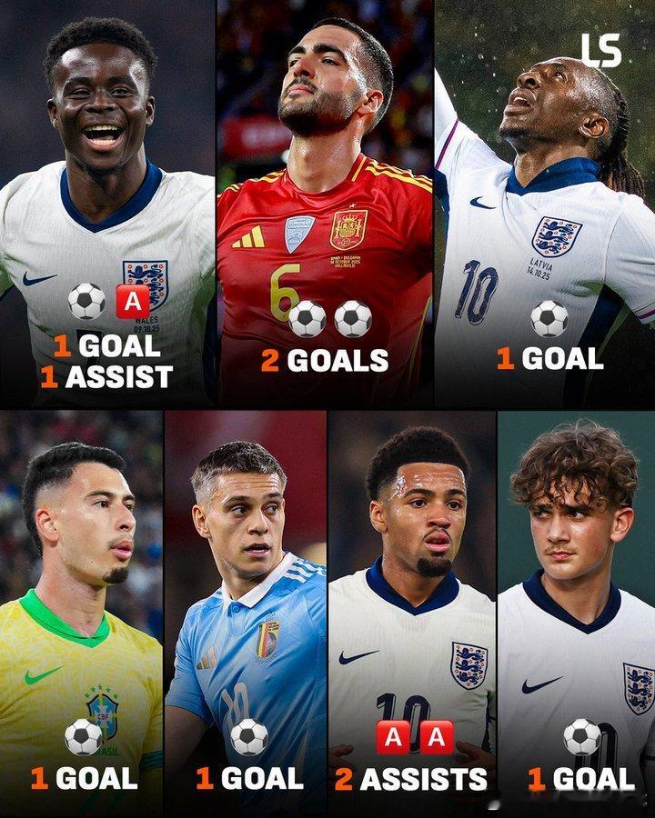 LiveScore:阿森纳球员在这个国际比赛日已经参与了10个进球😮💨🔥