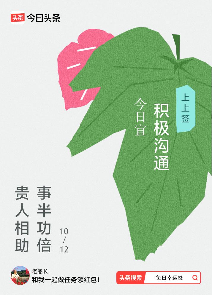 10月·每日幸运签我抽到了上上签,今日签文为:贵人相助,事半功倍。戳这里👉快来