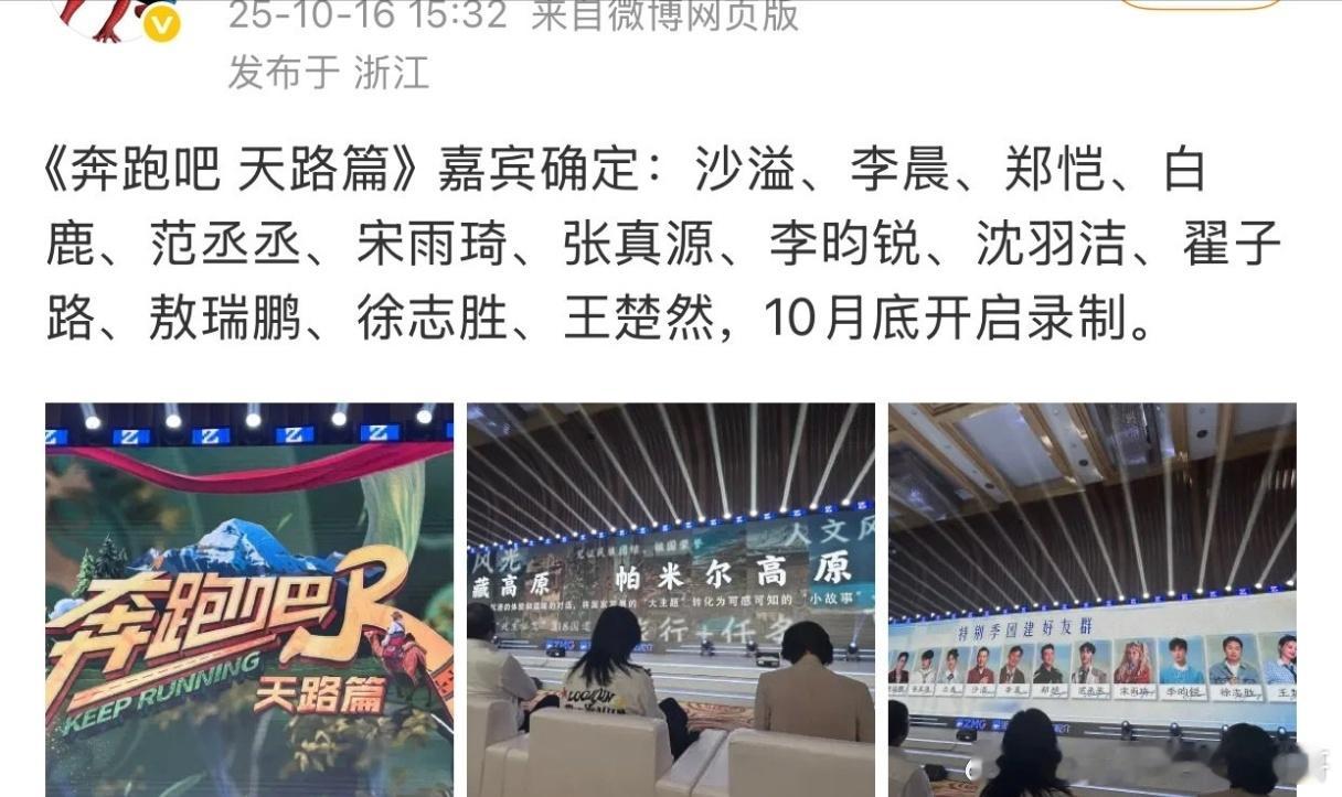 网传🍉《奔跑吧 天路篇》嘉宾确定:沙溢、李晨、郑恺、白鹿、范丞丞、宋雨琦、张真源、李昀锐、沈羽洁、翟子路、敖瑞鹏、徐志胜、王楚然