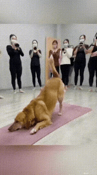 瑜伽课上女生们练得手忙脚乱,结果老师家的狗子一上场,一套动作行云流水,直接把人看