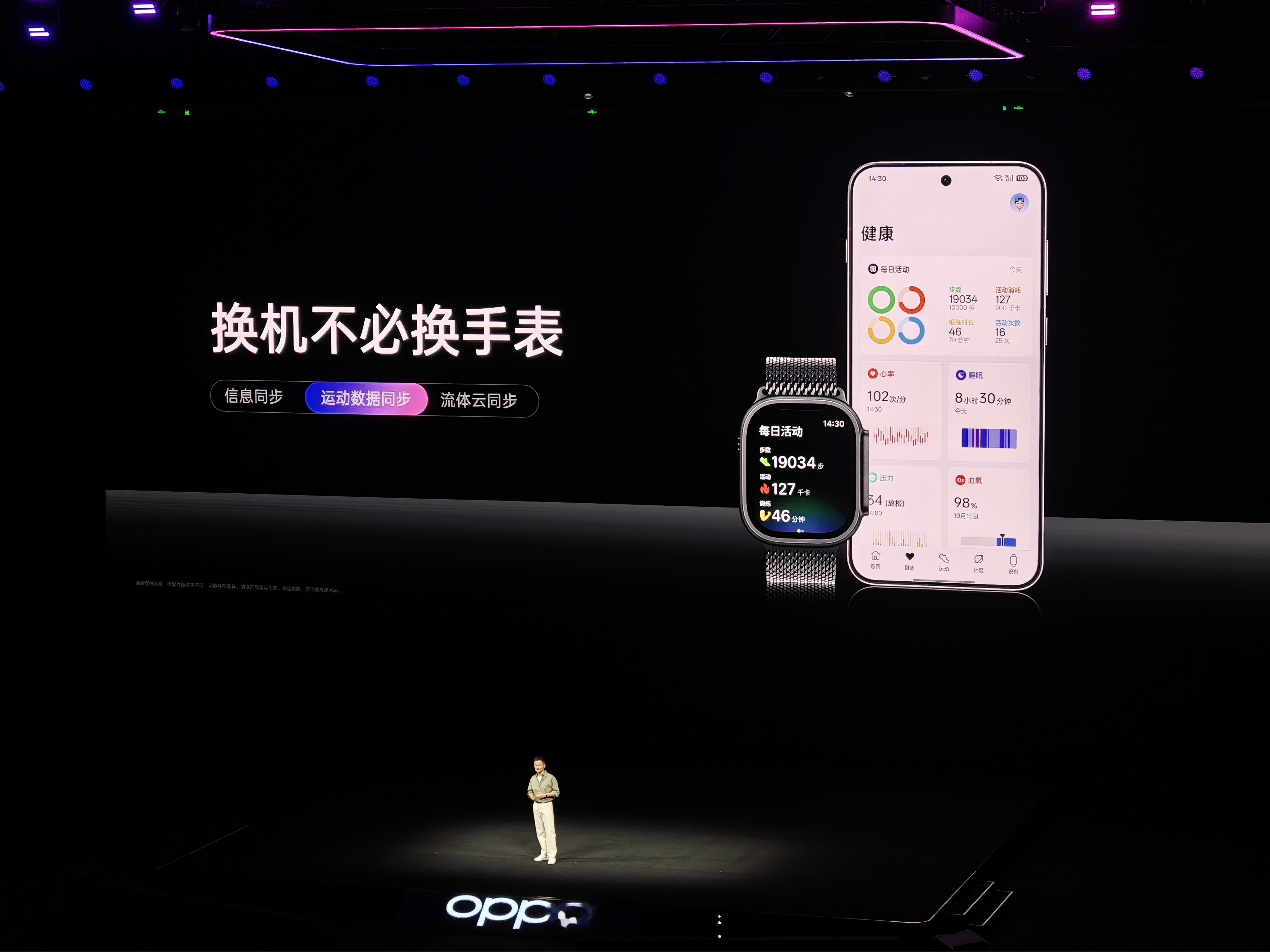 Apple Watch连OPPO手机,可以接收OPPO手机信息推送,运动数据,流体云信息。