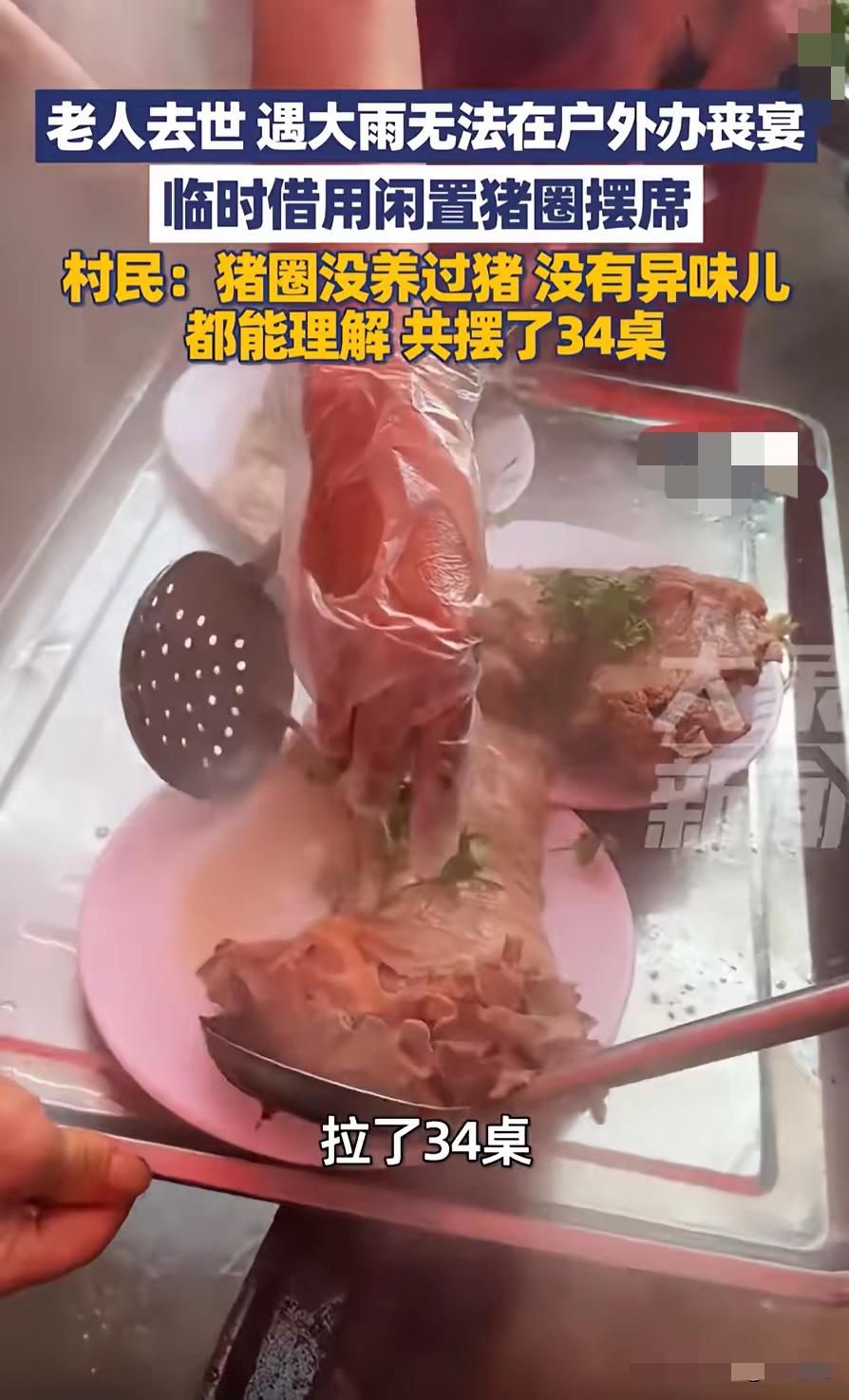 山东菏泽这场猪棚里的丧宴,比城里大酒店的排场更见真心! 老人出殡遇大雨,没法在户外摆席,村民干脆把34桌宴设进了闲置猪棚。你猜怎么着? 没人嫌弃,老人孩子都吃得香,脸上半点儿不别扭——因为这棚子没养过猪,半点异味没有,更因为大家都懂,来这儿是送老人最后一程,不是来挑场地的。 城里人总讲究排场、讲形式,可在农村,“情分”才是顶顶重要的。冒雨赶来帮忙,在临时找的棚子里吃饭,没人觉得掉价,反而透着股实在劲儿。 这哪是凑活吃饭,分明是把“互相体谅”摆到了台面上。