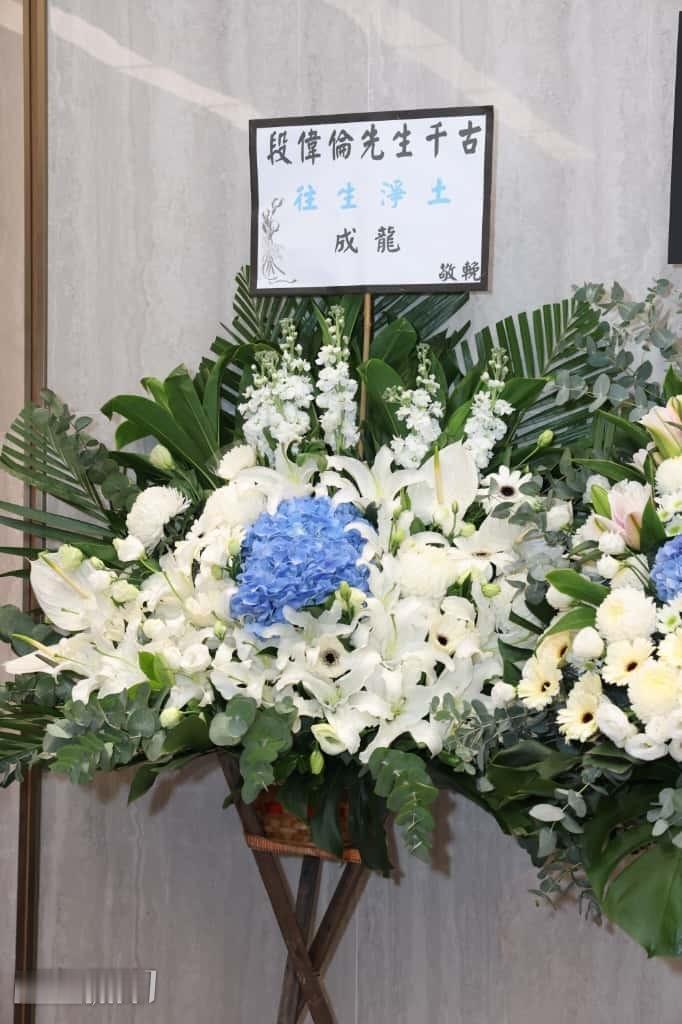 圈内好友送上花牌致哀,包括成龙大哥、火星、卢惠光、钱嘉乐、汤盈盈、方中信、吴彦祖、陈敏之、鲍起静、江美仪、陈欣欣、饶佩君、麦家琪等。