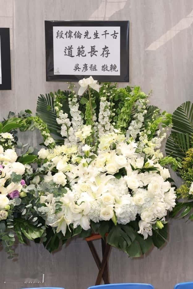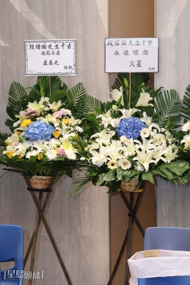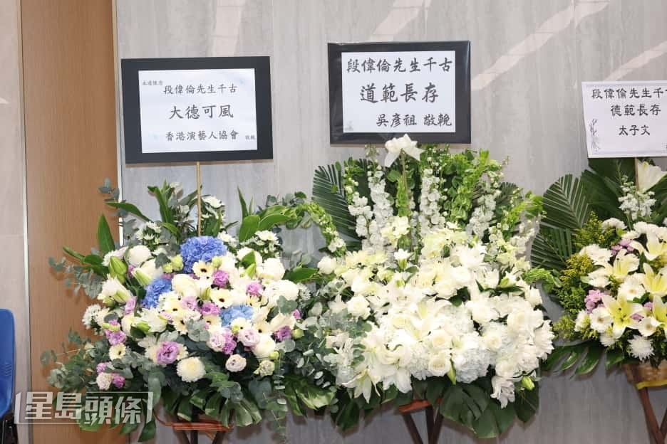 香港演员段伟伦日前去世,今日在红磡万国殡仪馆设灵,次日出殡。圈内好友送上花牌致哀