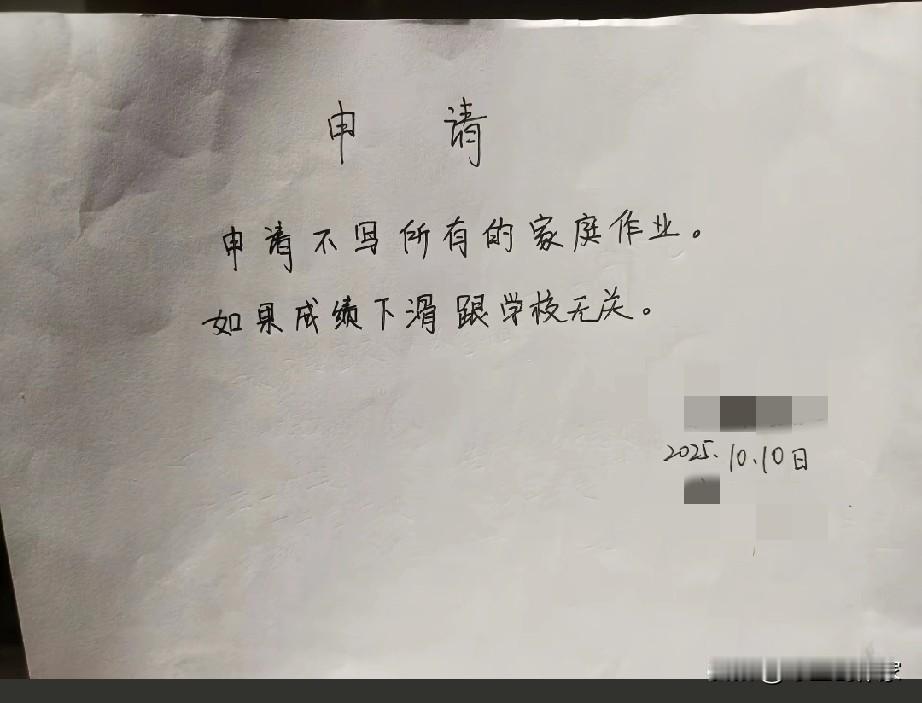 这个是社会的问题还是家长的问题? 抖音也是一个宣泄的平台。最近一位家长在平台上发布因自己孩子每天写作业写到很晚,特向老师写了一个不写作业的申请书。这一举动在网上引起了热议。 有支持这个家长的做法的,认为孩子每天写作业写到很晚,确实很劳心劳神;有认为老师天天布置这么多作业,老师自己有参考过时间没有;有认为只要孩子心理健康比什么都重要,学习就是静待花开吧。当然也有人持反对意见的,认为孩子才小学就这个样子,没有一点抗压能力,以后上初中和高中怎么办;也有人说,作业写到很晚为什么不找自身的原因呢?也有人说,老师恨不得所有家长都这么做,最好在校长室里面签字画押,免得考试时影响整个班级的平均分。 我想说,作业问题不是单方面的问题。作为学生来说,写作业确实是自身的任务,就像我们家长都要上班一样,只是每个人的分工不同而已;作业为什么会写的这么晚,更多的应该是要找自身的问题,不能把所有的问题都归结于外在条件。如果不是那种不想学习的孩子,那孩子完全可以利用课间和中午的时间进行合理的安排。作为家长来说,我们更多的应该是在孩子面前要树立老师的威信,帮助孩子正确的认识学习的问题,若确实是作业偏多或者孩子跟不上,完全可以和老师进行沟通,不要一下子采取这种极端的做法,最后只能害自己。我觉得最重要的一点是要引导孩子适应老师,积极做好家校沟通才是最重要! 孩子的学习,家庭成分确实要占主要的地位。很多人都会说,孩子的学习都要家长来完成,那还要老师干嘛?老师的引导作用确实很重要,但家长的监督作用也同等重要。家庭教育是打地基,地基稳了,房子才能盖得高、盖得牢;学校教育则是负责设计、施工和装修,让房子更美观、更实用。所以,老师和家长不是"谁来完成"的问题,而是分工不同、目标一致的最佳合伙人。只有家校携手,形成合力,才能给孩子最好的教育。 你们觉得孩子作业写的太晚,谁的问题要多一些? 家长督促作业 小学生作业压力 娃对作业的肯定 小学生作业管理 中小学作业负担 作业困境 中小学作业管理