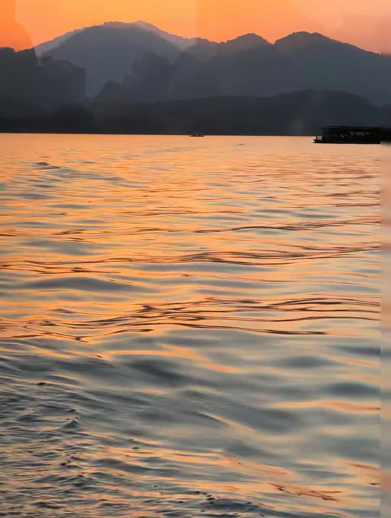 西湖的水居然肥成这样,看起来有种柔和的绸缎质地,又带有光滑细腻的感觉,在西湖边上看日落真的超级浪漫