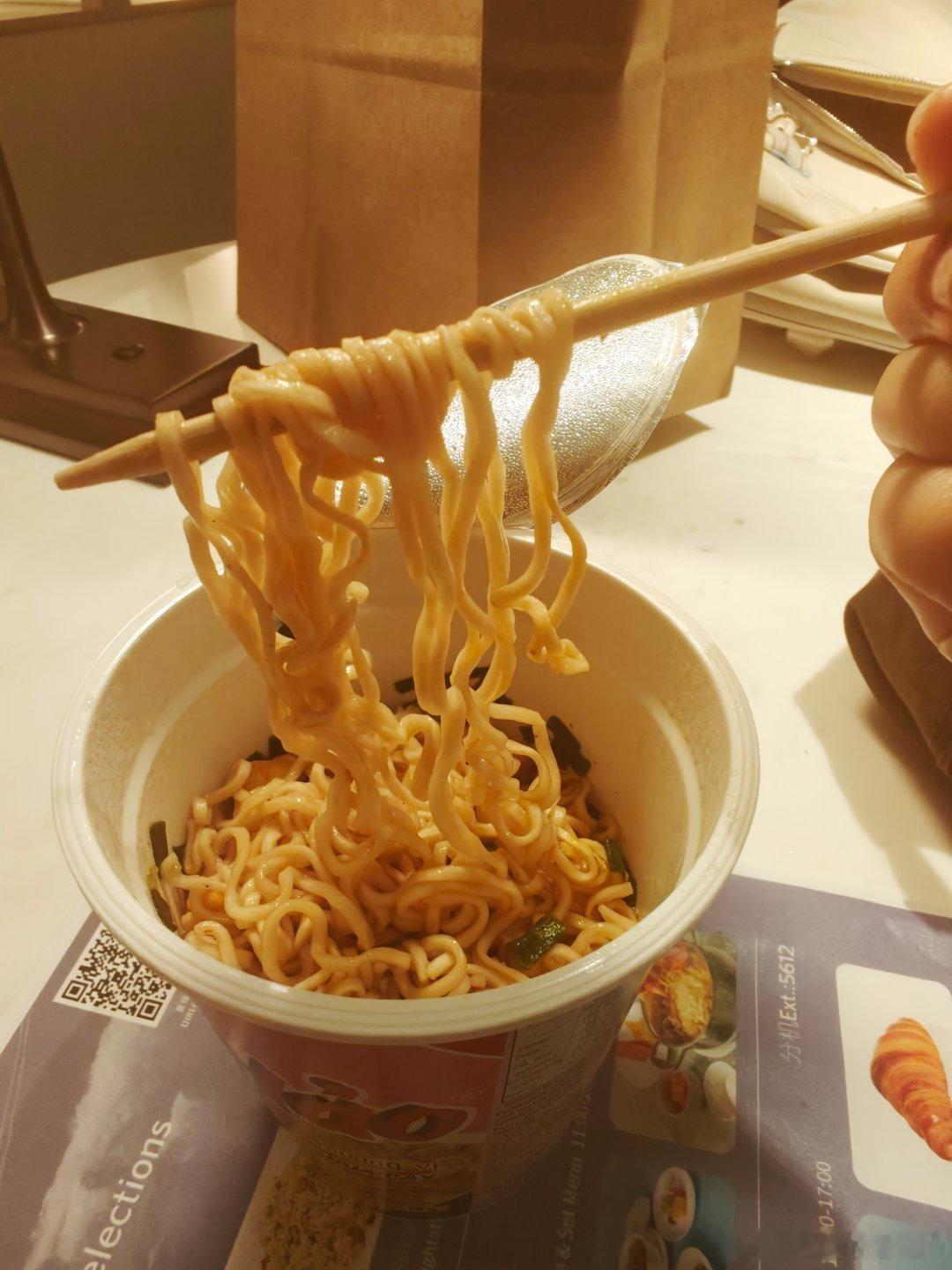 日产四十周年品牌之夜活动回来,感觉有点饿,就约着李兰兰一起到便利店买了泡面吃,回来后才发现我的泡面里没有叉子[笑cry][笑cry][笑cry][笑cry],还好李兰兰比较机智给我们俩一人加了根烤肠,现在就只能这样吃泡面了。你的泡面里有叉子吗??