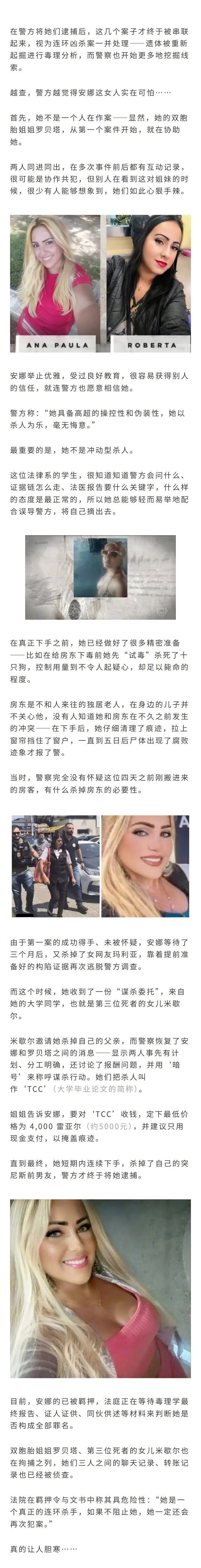 巴西出现连环杀人案:一名法律系女生和她的双胞胎姐妹,在四个月内连续毒杀4人……