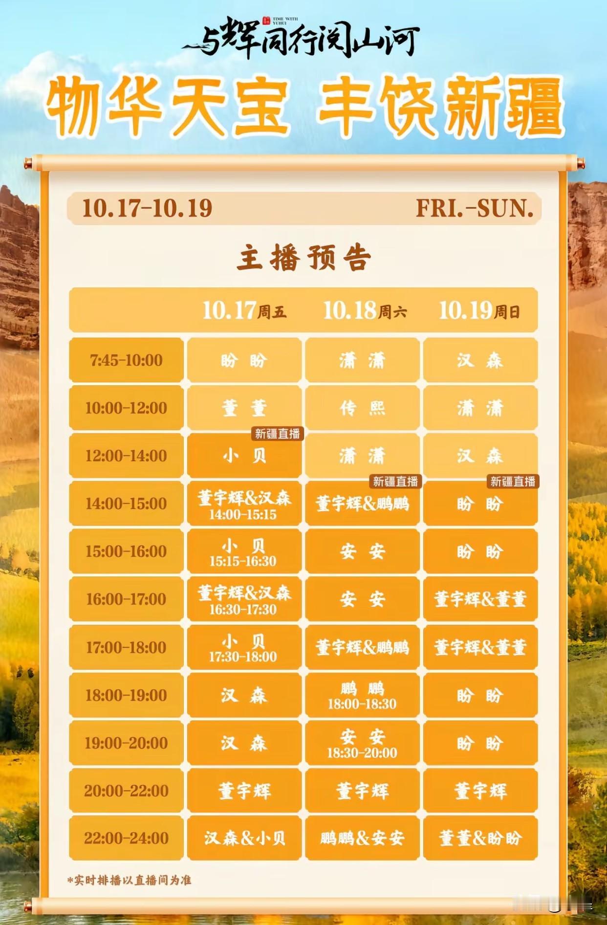 与辉同行新疆行的日程安排出来了 董宇辉下午2点出场 然后开启为期3天 每天7小时