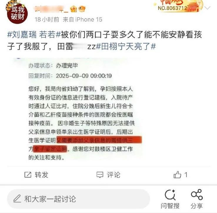 柠檬水拿这个澄清证明不了刘嘉瑞是若若孩子的爸爸哦!