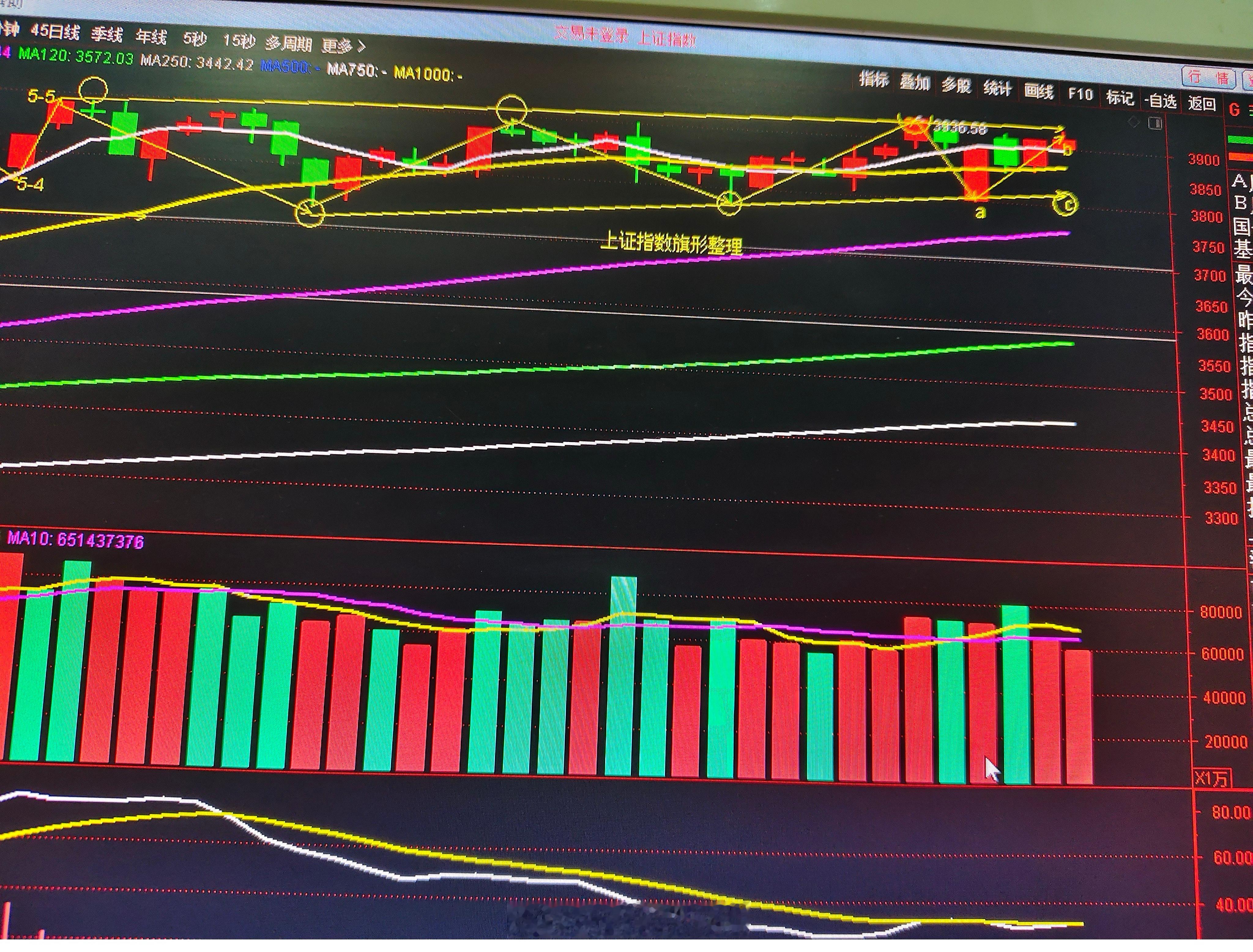 从浪形结构上看,在箱体内来回震荡折返都是3浪结构。再等两三天,浪形结构就会完整,更像是三角形调整浪,大约还会回踩去考验3800点的支撑。