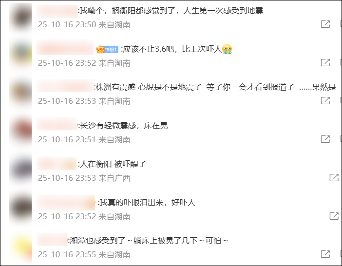 湖南多地有明显震感,有网友说床和窗户都在摇。