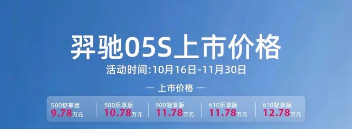 【羿驰05S正式上市售9.78万元起】10月16日,羿驰05S正式上市,新车共