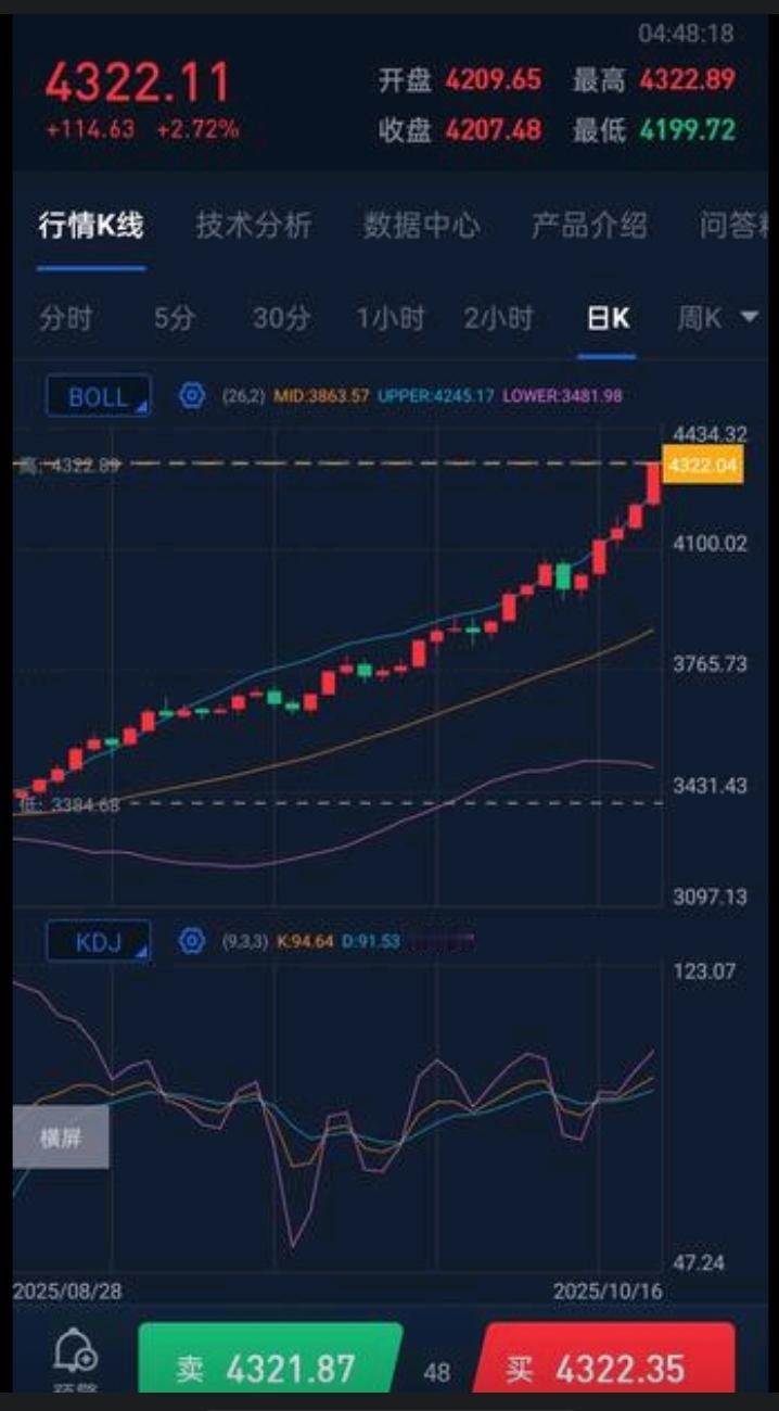 国际金价就像脱了缰的野马,一个劲儿的往前奔跑,现在已经来到4300美元上方一盎司