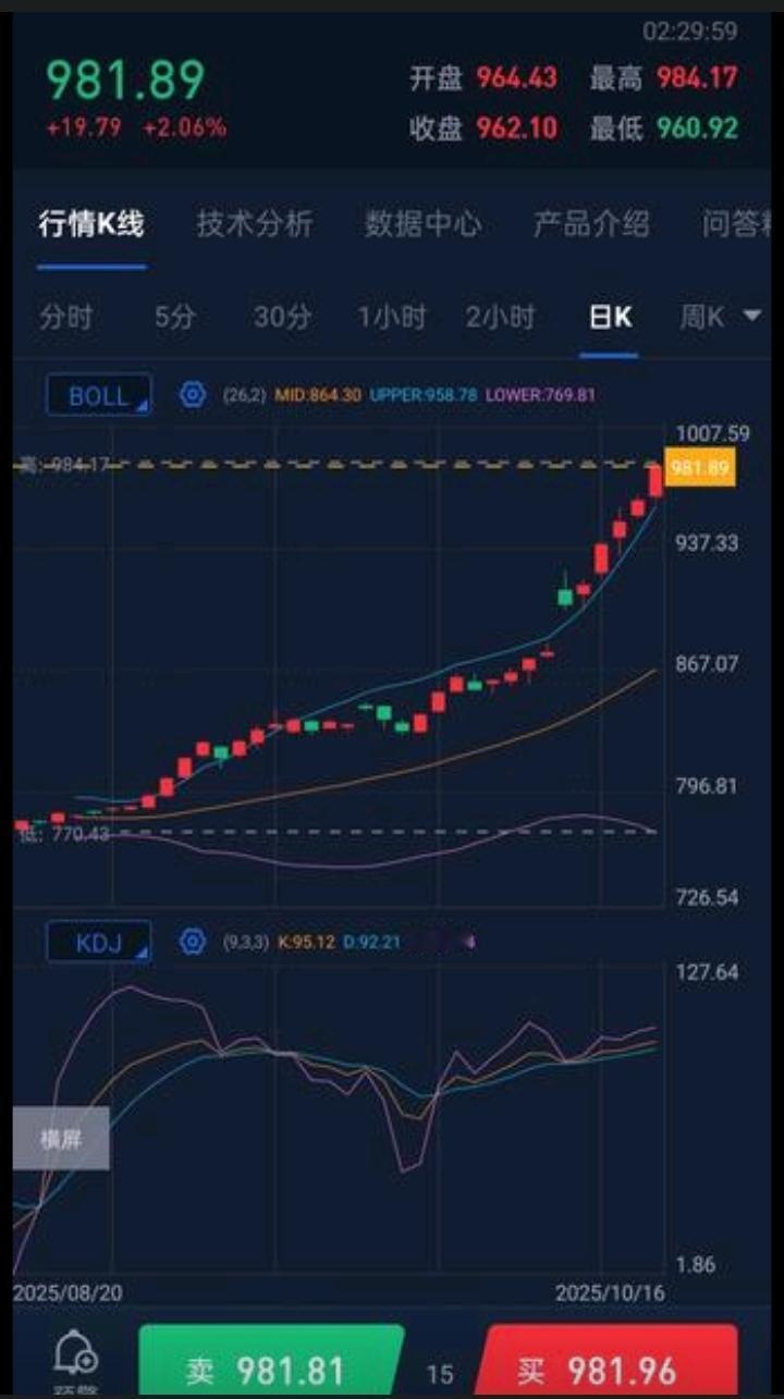 国际金价就像脱了缰的野马,一个劲儿的往前奔跑,现在已经来到4300美元上方一盎司了,上海金也到了980元一克了。 几次游说老婆把戒指卖了,她都不肯。当初金价700元一克时,就叫她把戒指拿出来兑换,她不同意,说金能保值。 那时候她是对的。可现在都980元了,还留着不肯出手,就有点不可理喻了。 金价涨幅太猛,担心它会有回调的一天。说不定会回落到800元一克呢。 未来的事谁知道呢? 我想见好就收,可老婆还要等金价再涨,谁也说服不了谁。 咳,怎办?