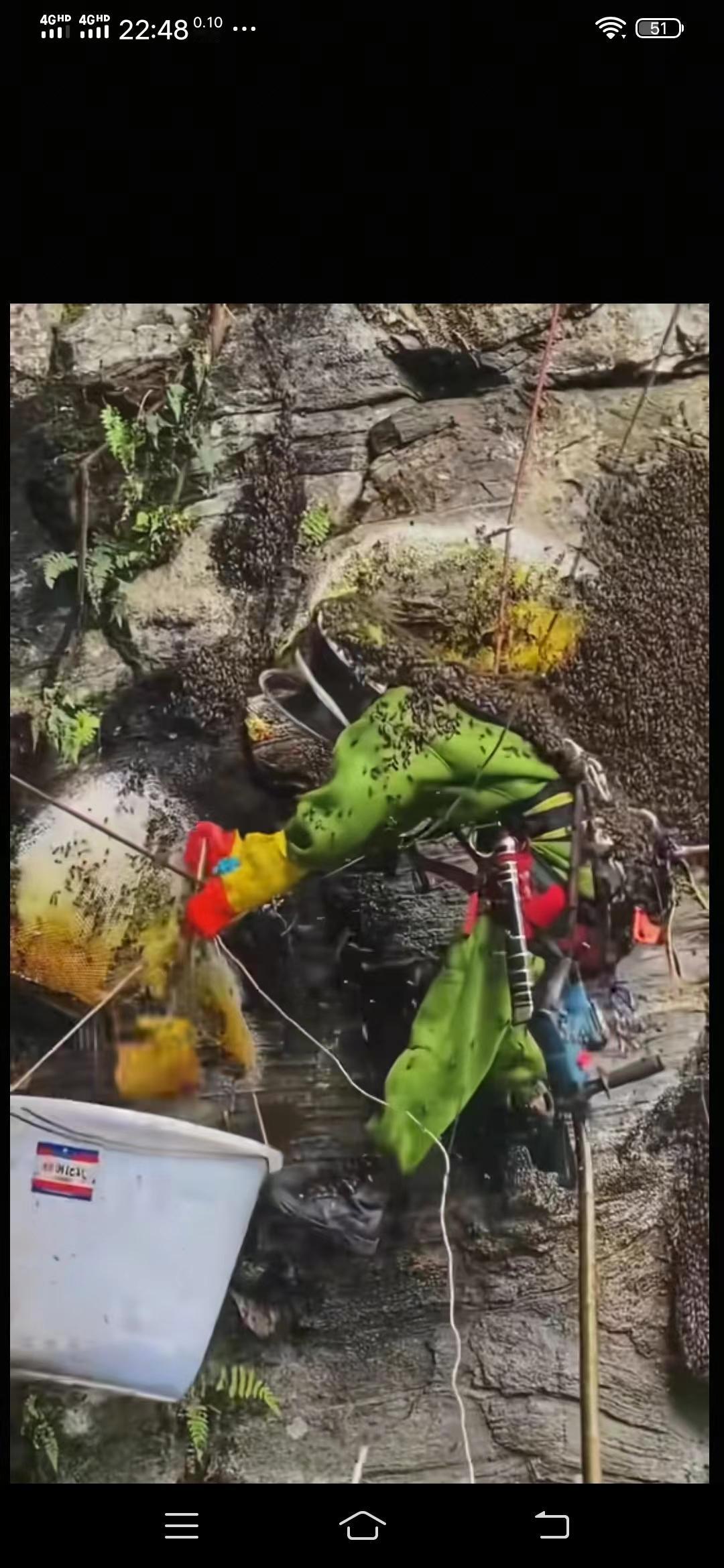 悬崖下的蜜蜂,云南的滇西、滇南较多,在临沧、普洱、版纳、保山、德宏、红河、文山都