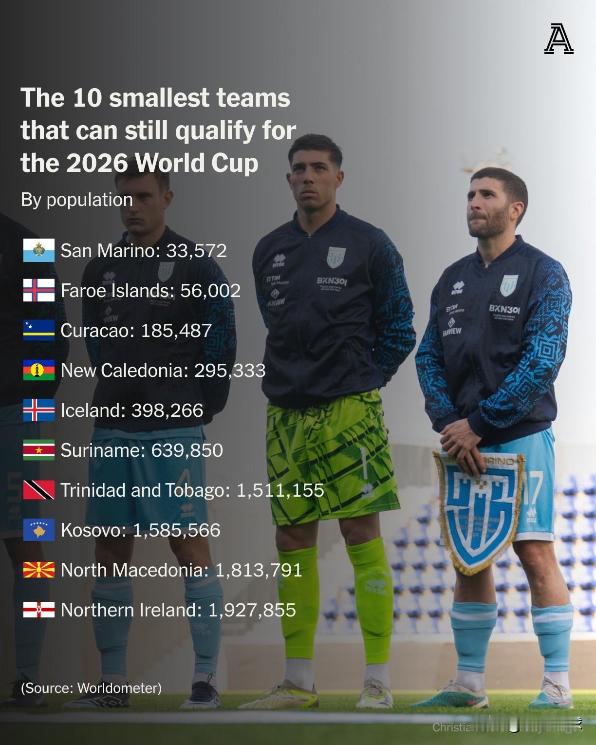 在本周佛得角锁定2026年世界杯入场券后,按人口计算,哪些最小的10支球队有望在明年夏季的资格赛中脱颖而出? ▪️ 拥有3000名球迷的球队——占全国人口的3% ▪️ 瀑布数量多于职业球员的国家 ▪️ 需要惨败才能提升希望的球队 ▪️ 代表领土面积小于马恩岛的队伍
