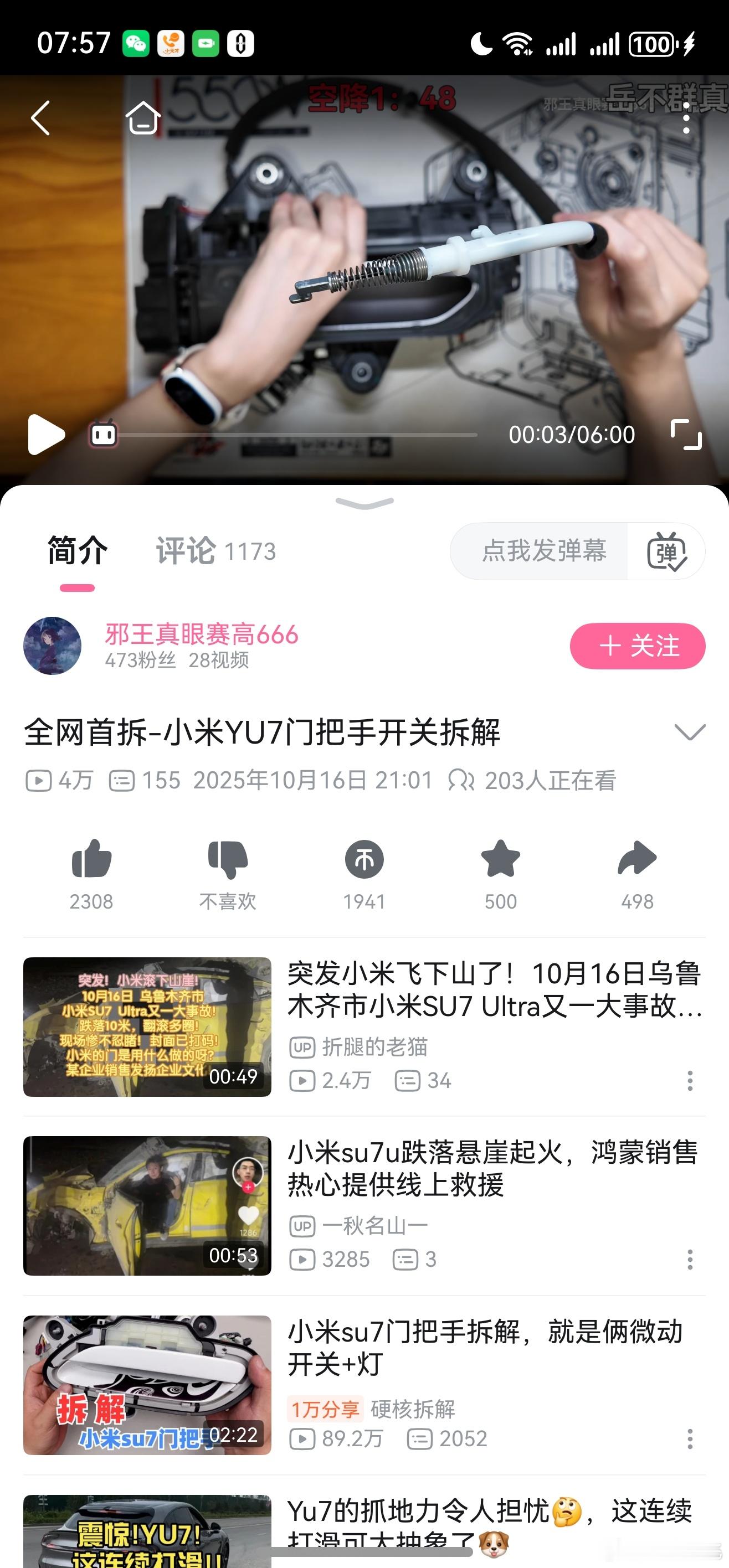 看到小米yu7门把手拆解视频了,确认yu7是有外部机械开门装置的。幸好哥几个买的是yu7,这回安心多了。