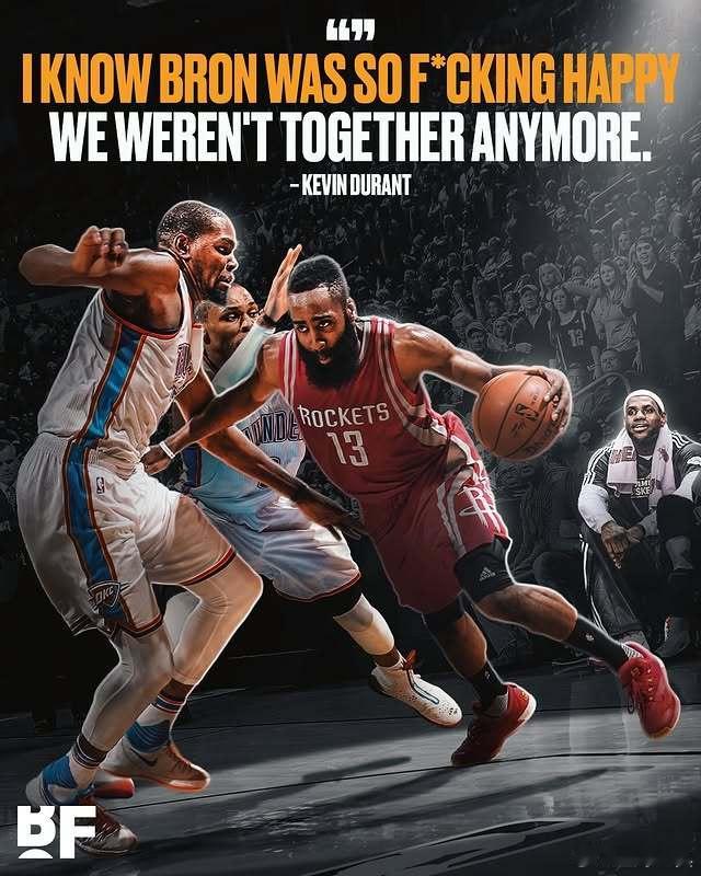 "真正让我恼火的是,詹姆斯、韦德还有联盟里那么多家伙都在发推说'恭喜我的兄弟哈登…他注定要大杀四方'…我清楚詹姆斯当时他妈的高兴坏了,因为我们终于散伙了。毕竟当年我们可是把他们压得喘不过气。"