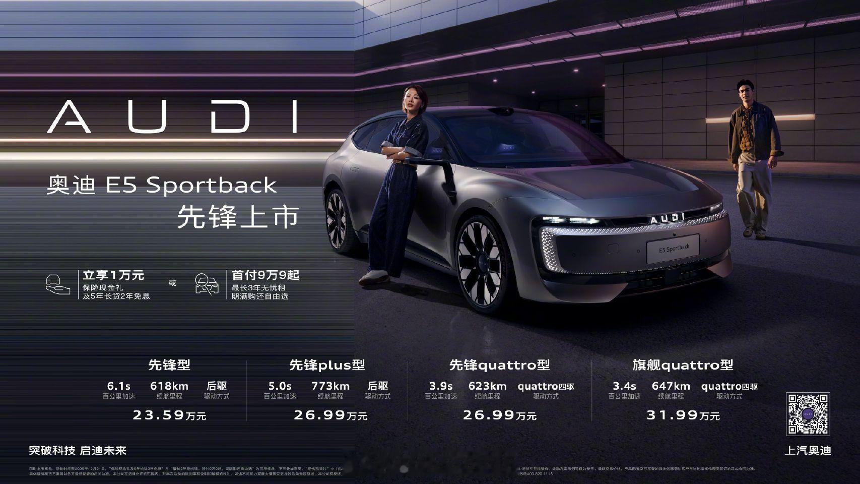 奥迪E5 Sportback,直接把“豪华纯电”的价格打到22万级!既是奥迪百年豪华的延续,也是一次重新定义“高价值”的作品。