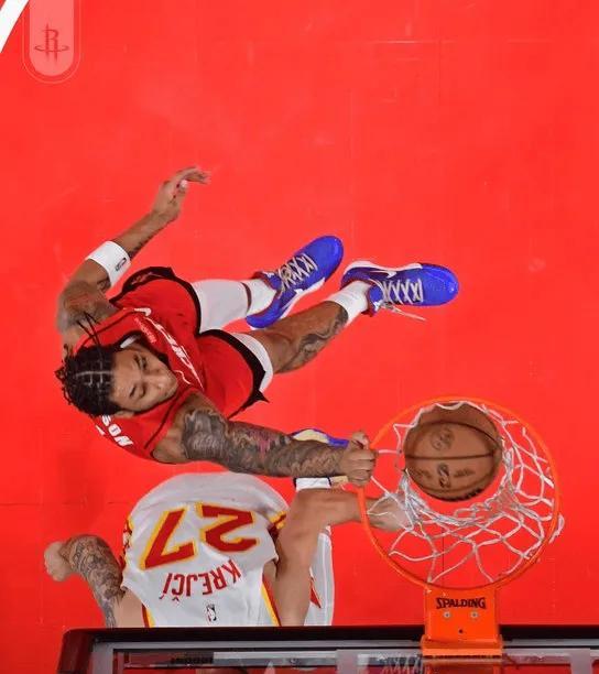 炸裂隔扣!火箭官方晒JD-戴维森隔扣克鲁伊奇的俯视视角图! 今日NBA季前赛,火箭133-115战胜老鹰。 第四节比赛,JD-戴维森无惧防守,单臂残暴隔扣克鲁伊奇。