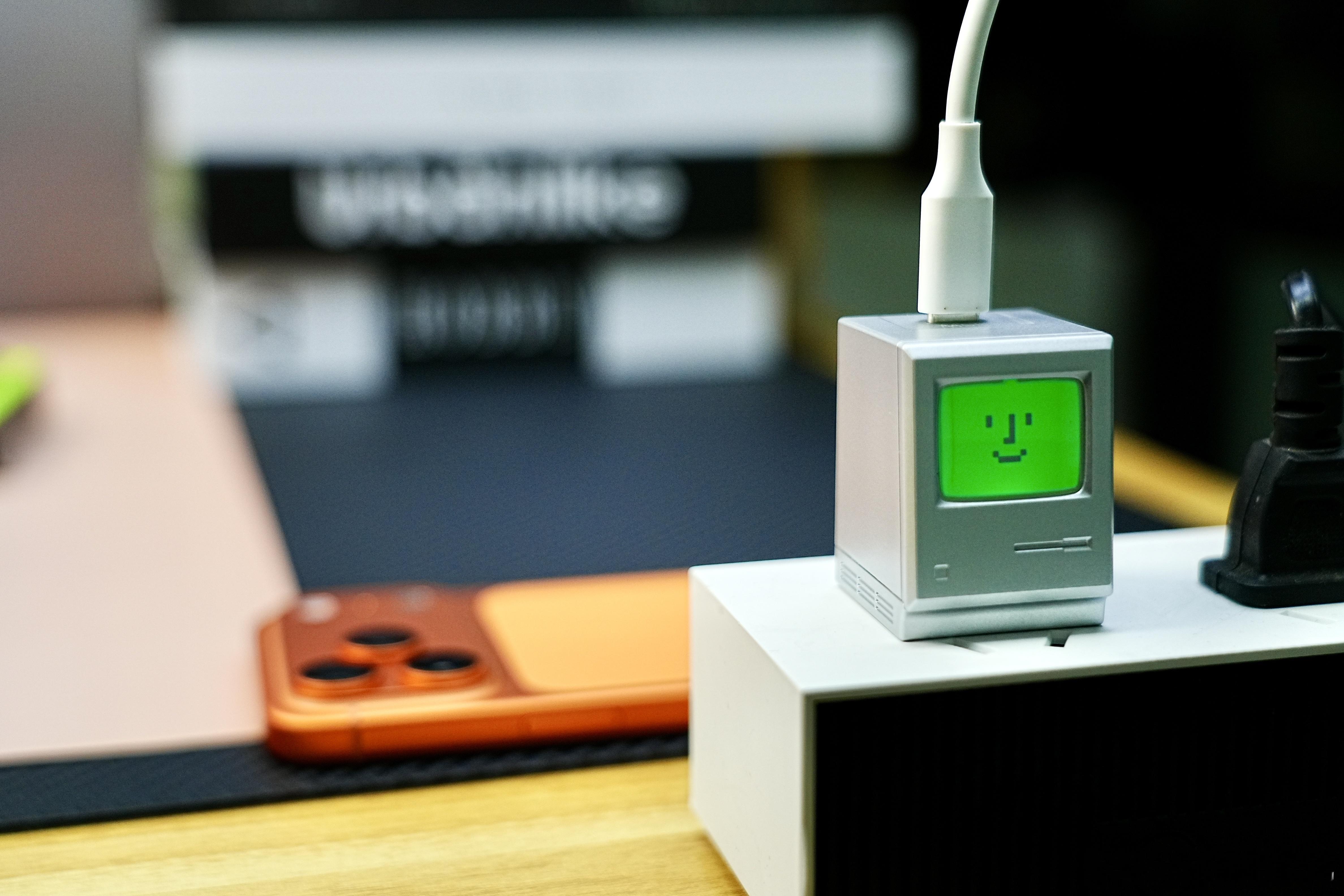 苹果手机不送充电头已经是习惯了,但我一般会配个小巧的快充头来用,闪极Retro系列设计一直备受好评,因为就是和iPhone最搭的,最喜欢复古潮玩设计,手办级精致外观,除了是充电器也是个不错的摆件,适配支持苹果17全系快充,机身插脚可折叠,小巧便携,放包里裤兜里都很OK,出门带着一个就能轻松搞定苹果全家桶了,35W疾速快充真的效率很高,九重保护安心充电,55g重量拿起来说走就走。