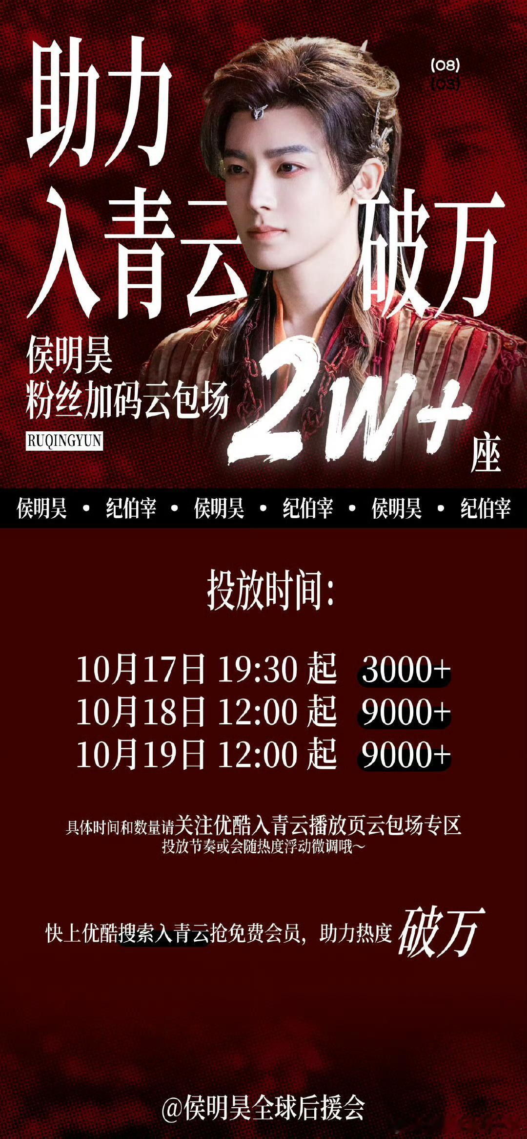 侯明昊纪伯宰侯明昊粉丝为《入青云》云包场2W+