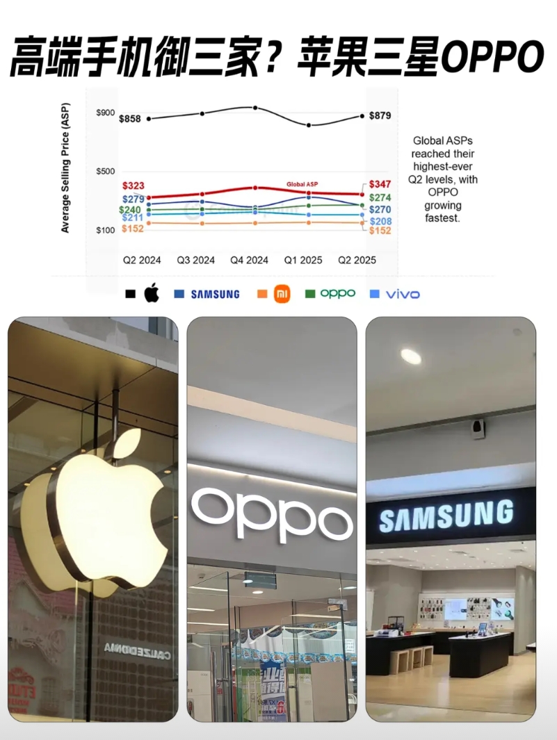 说点很多人不知道的:2025年只有苹果、三星、OPPO的全球平均售价(ASP)超过 250 美元(来自Counterpoint数据),其中OPPO以274美金的ASP超越三星位列全球第2!