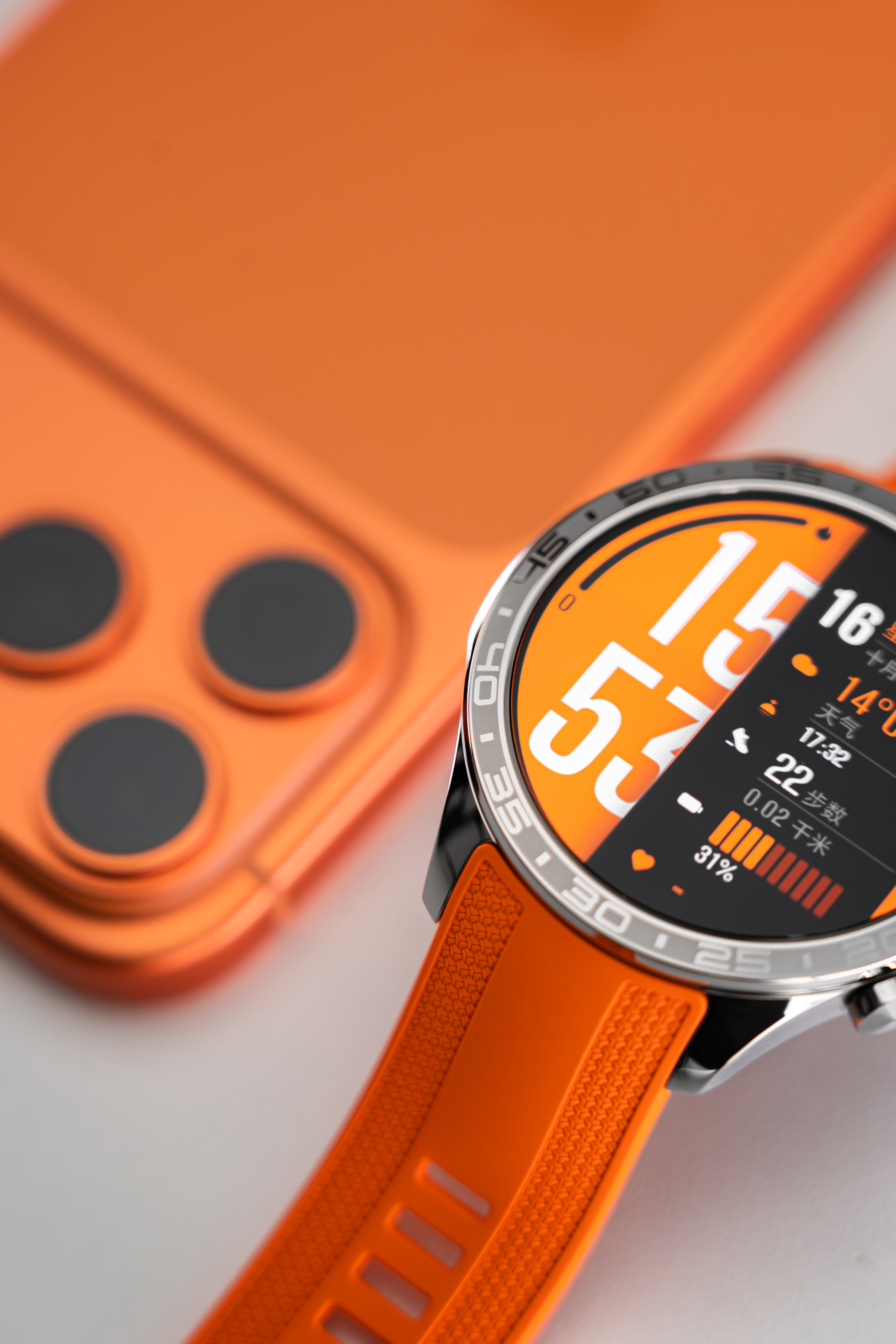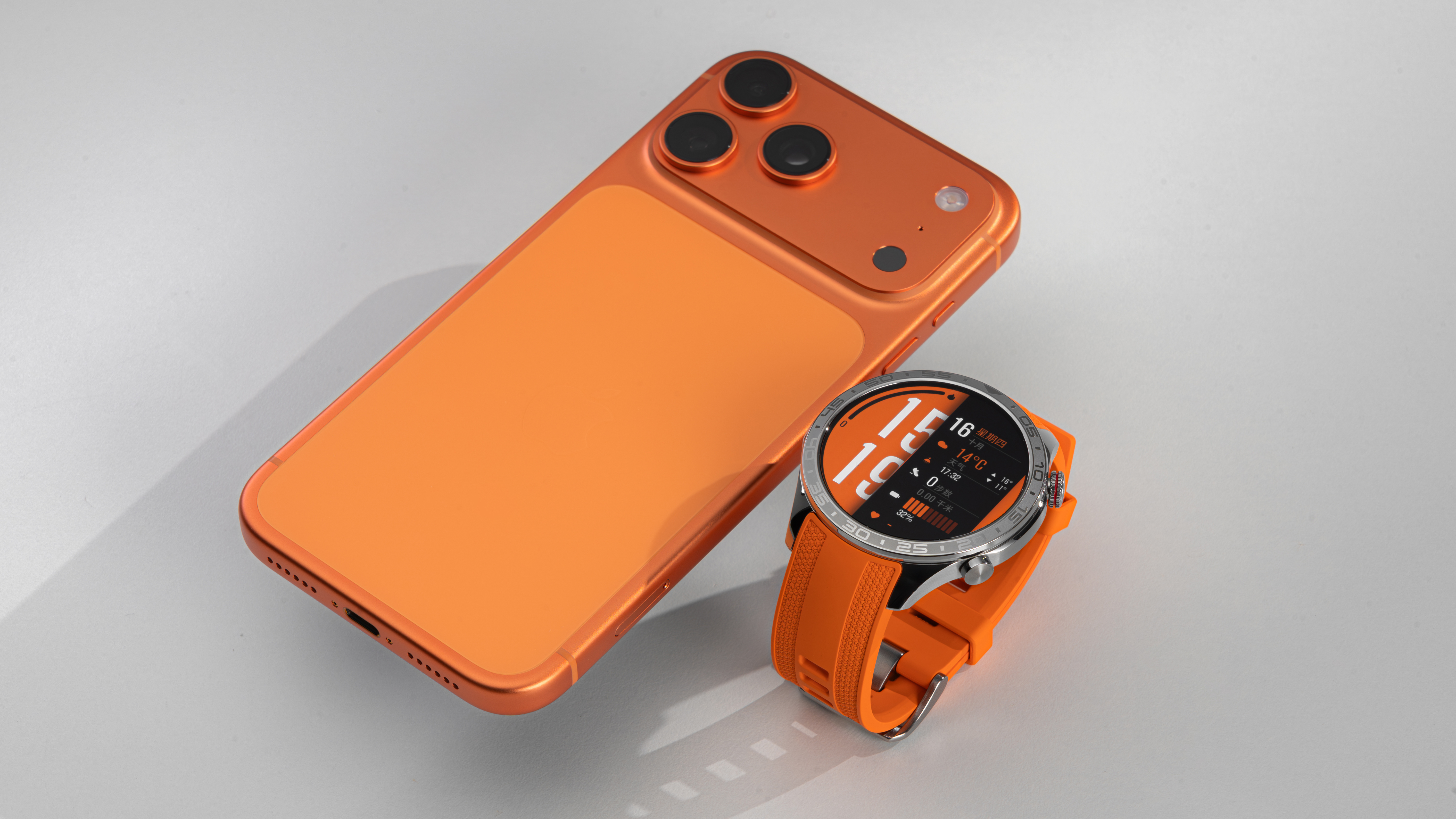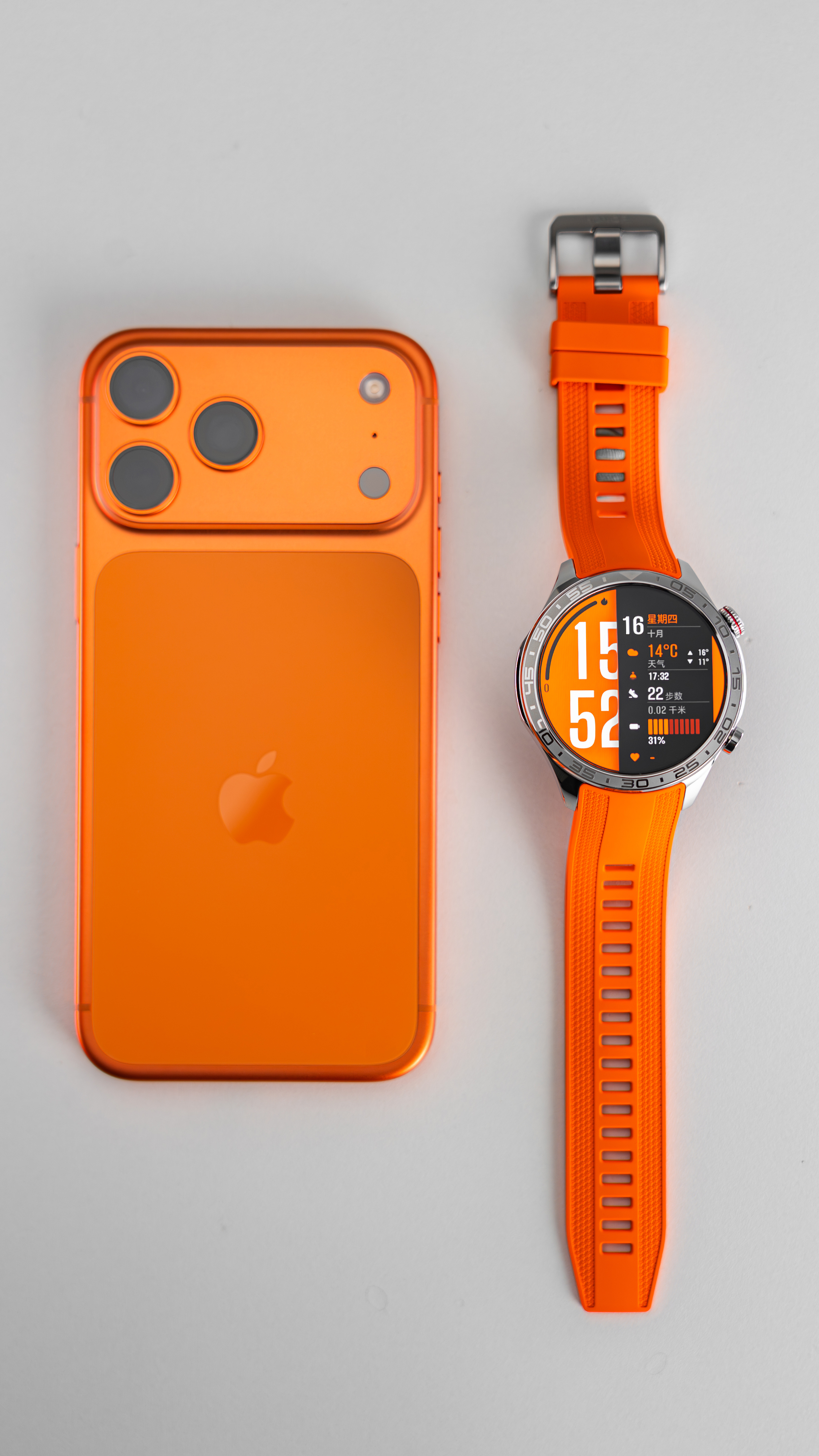 荣耀手表5 Pro橙色配上橙色iPhone 17 Pro Max,都很骚气,都很搭[笑而不语]