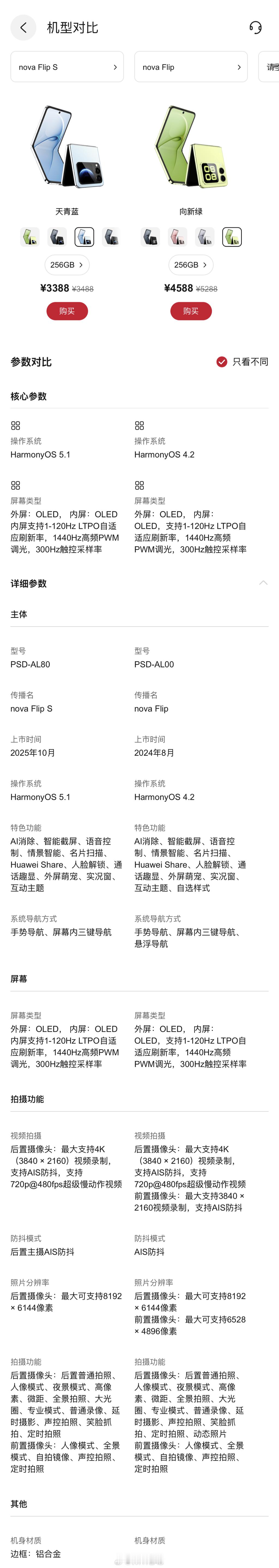 华为 nova Flip S 发布,12+256GB 售价 3488 元、12+512GB 售价 3788 元,首销减 100。增加了羽砂黑、天青蓝 2 款配色,预装鸿蒙 5.1 系统,暂时不提供 1TB 版本。