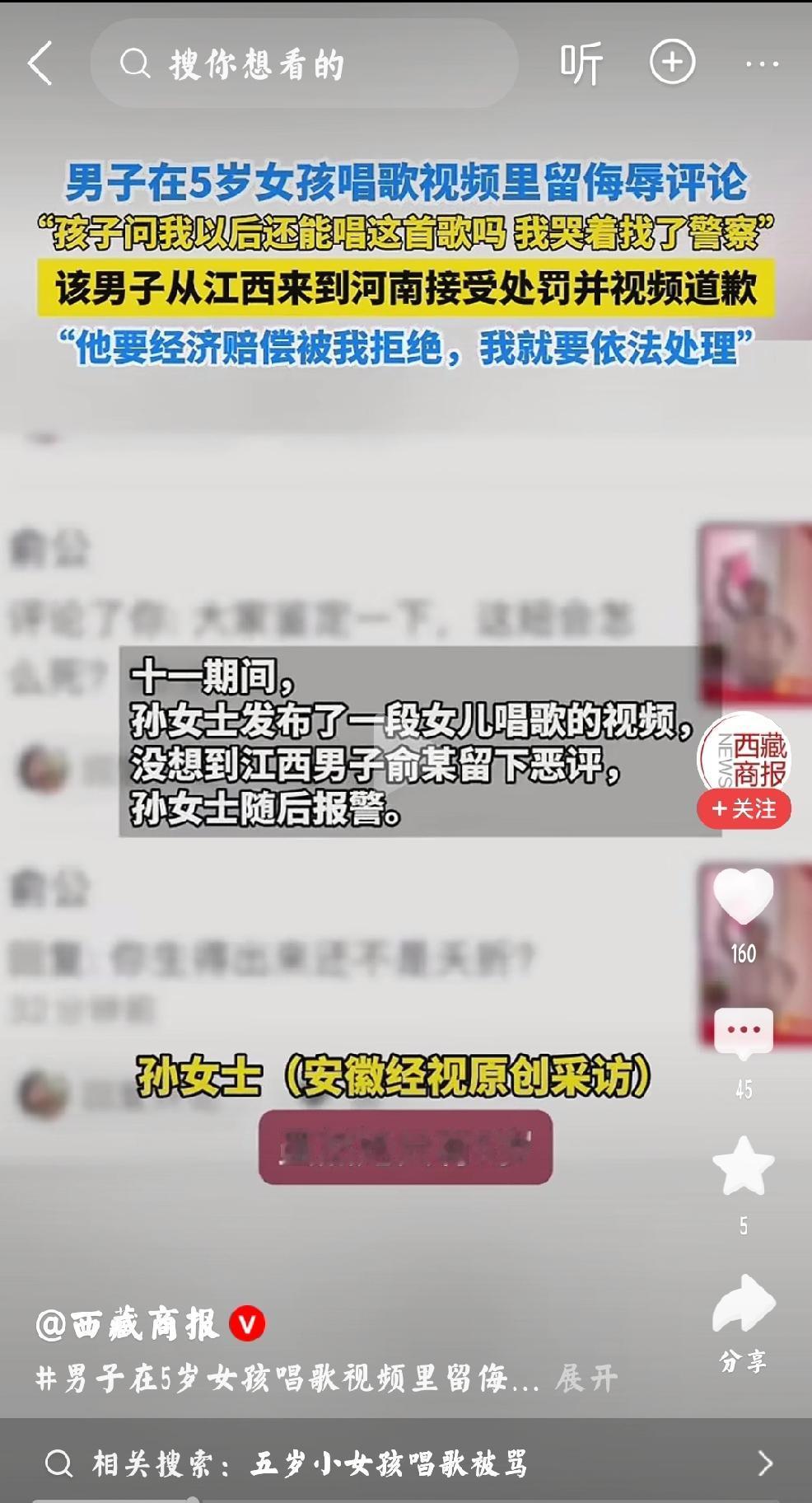 绝不接受 个人观点-不喜勿喷:五岁的孩子唱歌,男性成年人居然给出恶评。这件事难以接受。意难平,意—难—平—啊。道个歉,罚500元。