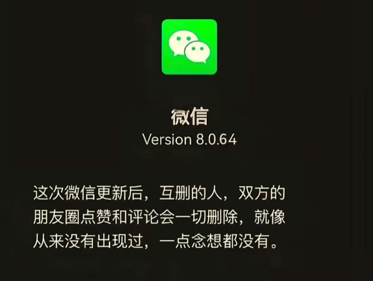 微信 一删皆空 这次微信更新后,互删的人,双方的朋友圈点赞和评论会一切删除,就像从来没有出现过,一点念想都没有。