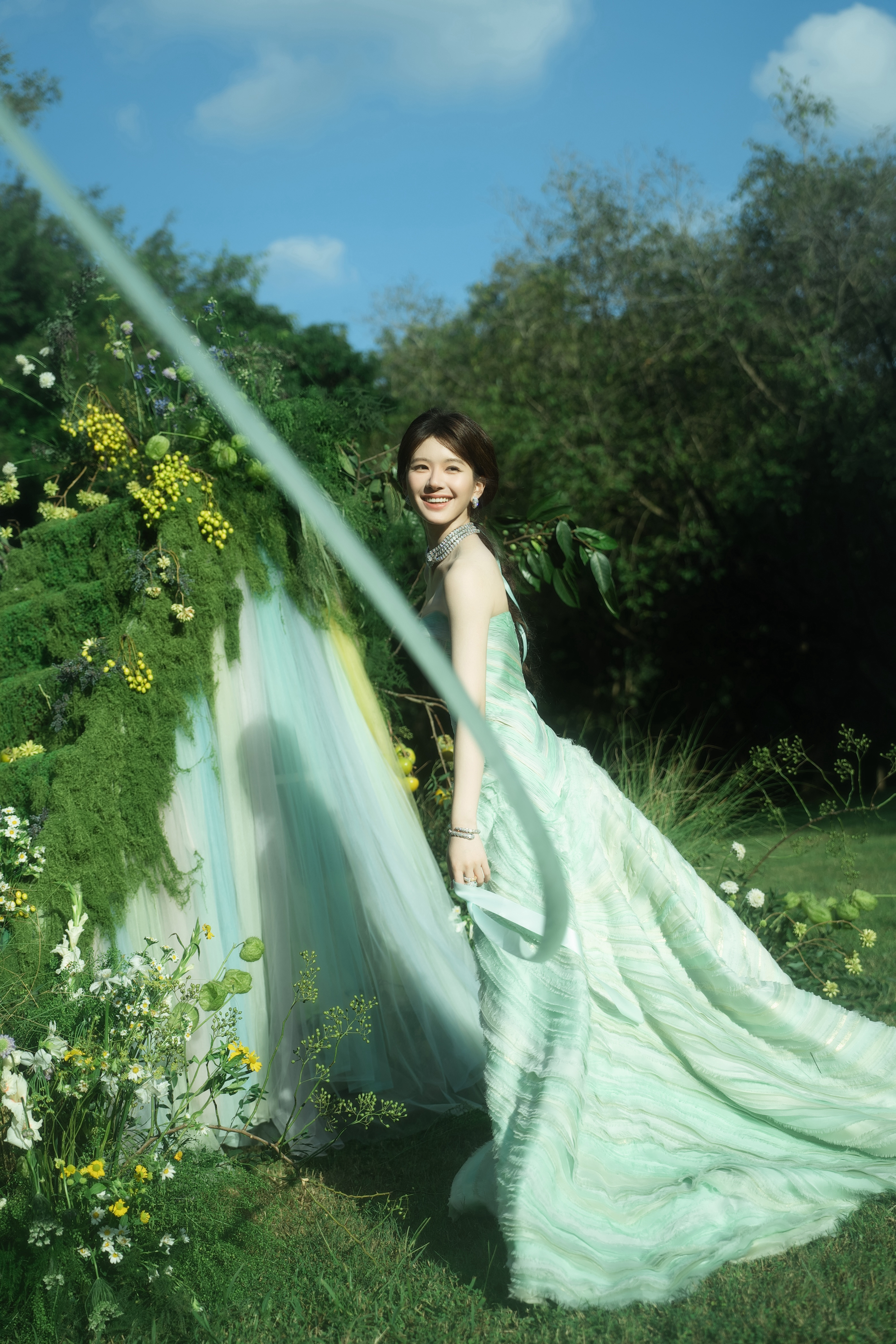 赵露思 薄荷裙漾着清意,在绿野间裁出一帧春的呼吸。