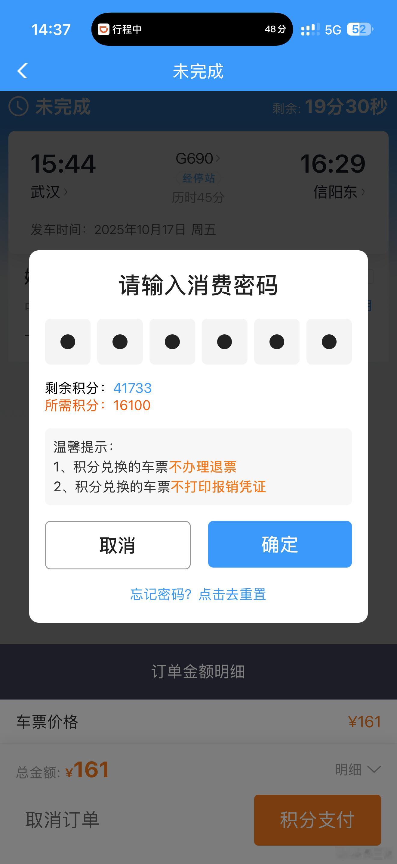 第一次用12306的积分,白嫖了一张160多元的一等座,太香了~武汉机场是真远啊