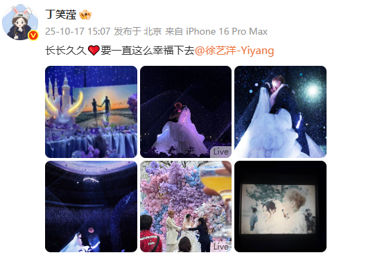 丁笑滢晒黄子韬徐艺洋婚礼照片丁笑滢去了黄子韬徐艺洋婚礼丁笑滢晒黄子韬徐艺洋婚礼