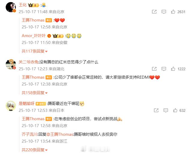在互动中,他还在评论区透露了自己正在考虑尝试创业的想法。