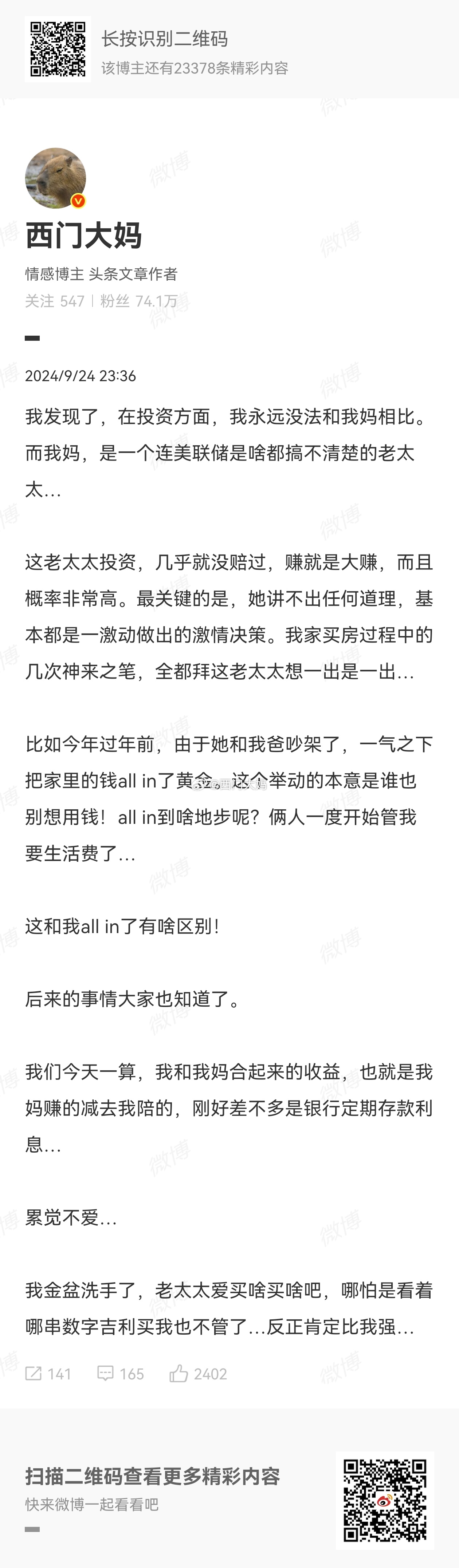 本来我是吐槽的,肯定是不构成投资建议,只是分享下生活~