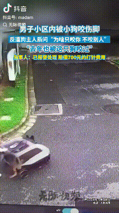 “为啥只咬你,不咬别人?”安徽马鞍山,男子带狗出门,结果被邻居家没有拴绳的狗咬伤脚踝,狗主人态度让男子很生气。 据无际视频报道,10月16日安徽马鞍山,男子称,自己带着两条狗出门,一只拴着绳子在牵着,一只腿有残疾用小推车推着,突然一只没有栓绳的狗冲了过来围着自家狗咬,因为自家狗训练的好就一直躲闪,结果突然就咬了我一下,在去年4月份就是被这只狗咬过一次。男子质问狗主人“你这狗到底能不能养?”,结果狗主人竟然反问男子“我的狗为啥只咬你,不咬别人”,男子听后非常生气,于是就选择报警解决,最终狗主人赔偿了700元打针费用。 被同一只狗咬了两次,男子也是够倒霉的,不过从这里也可以看出来狗主人根本就没有吸取教训,既然狗咬人,那么就应该时刻栓绳,结果不栓绳让在外面跑再次咬了人,咬人后不仅没有认错的态度,反而还有责怪被咬人的意思,这种情况换做任何人都会非常生气。 养狗的人可能都会觉得自家狗不咬人,其实这种思想就是错误的,养狗就要文明,出门就要拴绳,拴着绳出门不仅会显得文明,而且还会让人觉得狗主人有素质。