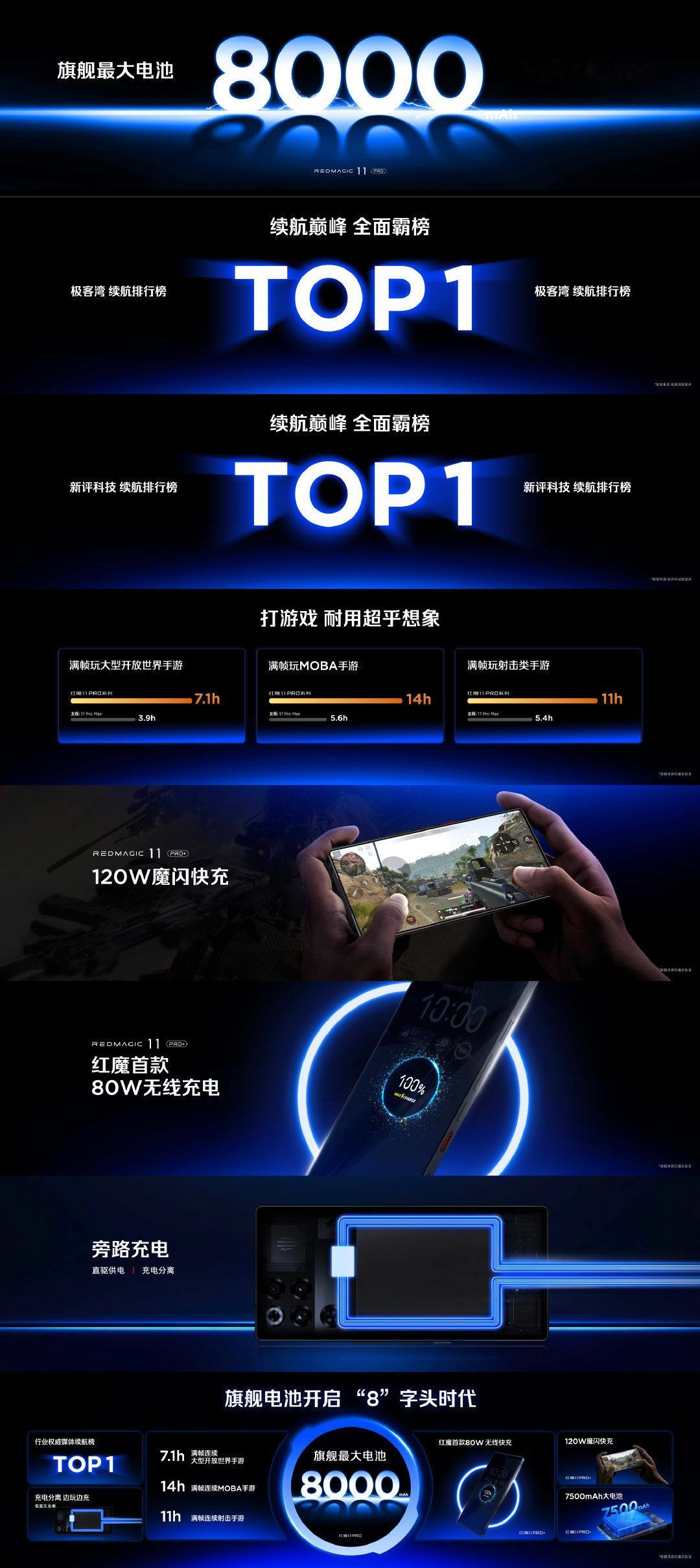 红魔的机子基本都是续航霸榜的水平,这次红魔11 Pro搭载了8000毫安电池。估计续航成绩又要霸榜了[笑cry]