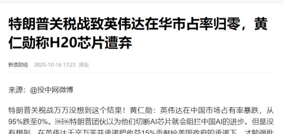 黄仁勋说,英伟达在中国市场占有率暴跌,从95%跌至0%!   美国人以为攥着AI