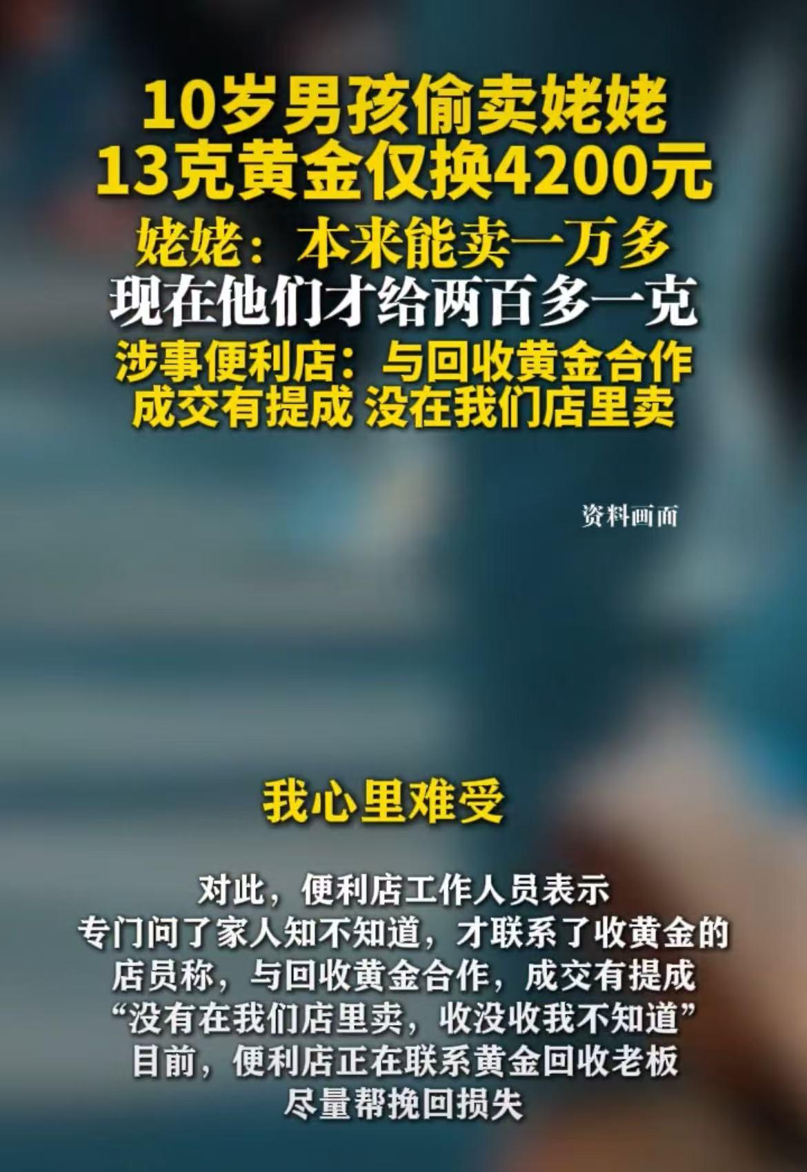 太黑心了!河南郑州,10岁男孩偷卖姥姥13克黄金仅换4200元,便利店与回收黄金