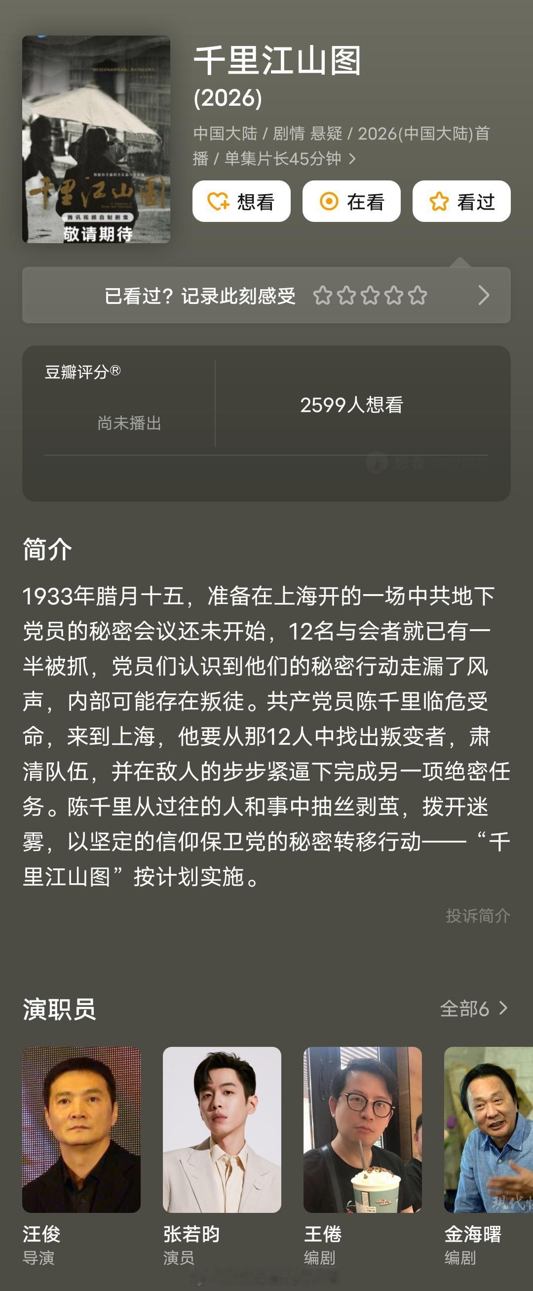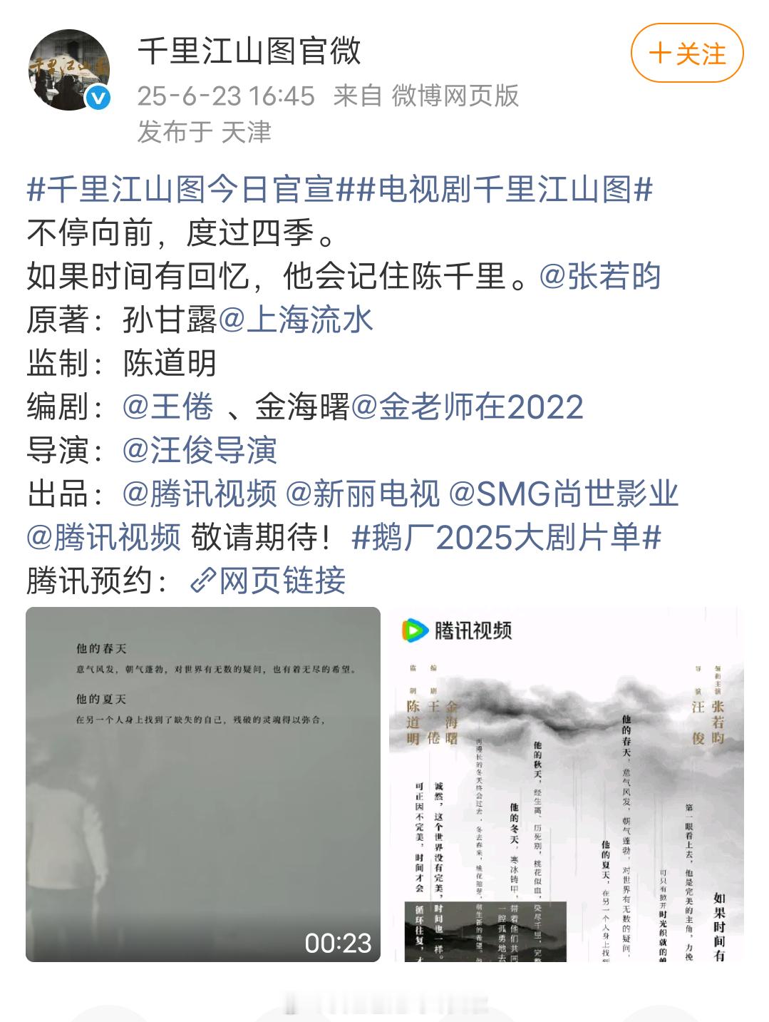 千里江山图女主好像真的是刘诗诗,男频大男主谍战剧,官博单宣过张若昀。
