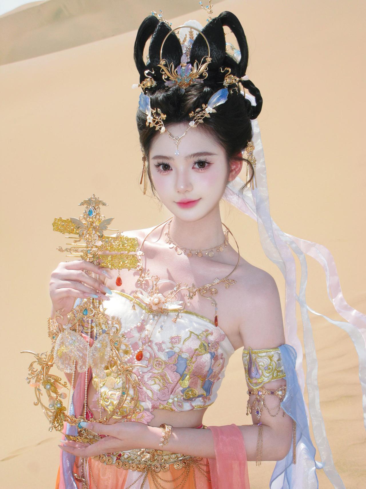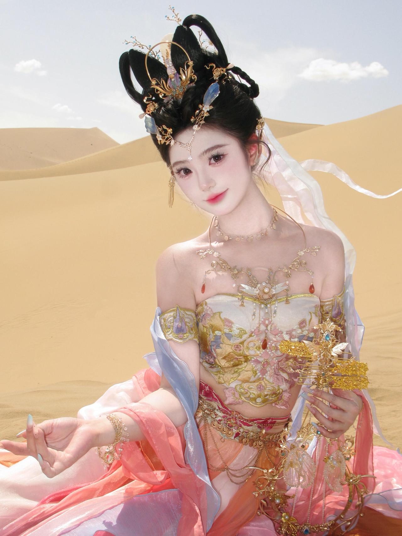 梦幻粉裙少女粉裙仙女 花海中的仙子