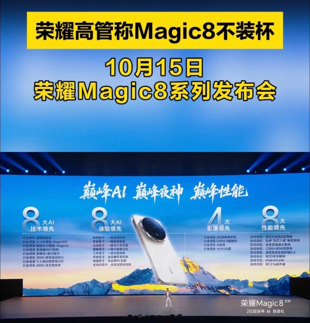 这次荣耀Magic8系列就设了两杯,大杯和超大杯,方便用户进行抉择,也没有强行分杯,不装杯荣耀高管称Magic8不装杯