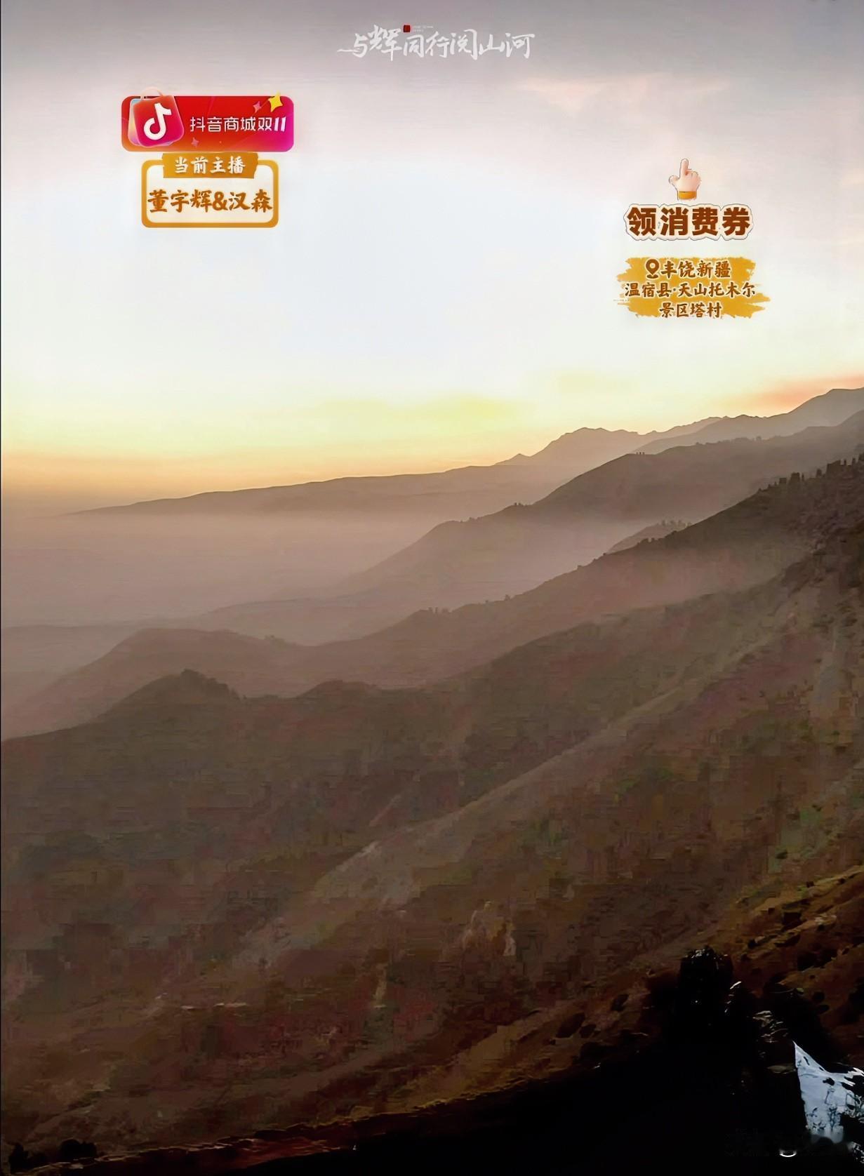 董宇辉正在新疆阿克苏出外场 看到远处的风景太美也不带货了 喊着直播间里的20万观众一起看美景 还买了版权请大家听着歌赏景 当《那远山呼唤我》和《旅行》响起时 看着远处雾霭中的山峰 喀斯特地貌的岩石 山顶和松柏上的积雪 还有那淡淡的晚霞 一瞬间觉得 当董宇辉的观众好幸福 你买不买他直播间的东西无所谓 只要来了,就不白来 他带着你全国到处逛 看名山大川,赏名胜古迹 分享他的人生感悟 关注你的感受 倾听你的故事 虽然隔着网线似乎离我们很远 可他在直播间里放着你爱听的歌 和你喜欢的风景 这一刻会觉得其实也没那么远 这个直播间真的很特别[耶]